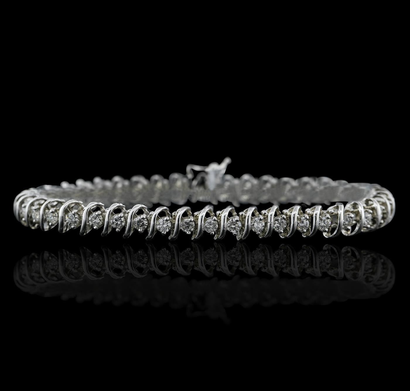 One electronically tested 14KT white gold ladies combination cast & assembled tennis bracelet with a hidden box clasp with a bright polish finish. Condition is new. Measurements: 7" in length. Containing: Forty-Two prong set round brilliant cut diamonds, measuring 2.80 - 2.80 x 1.68mm (depth est.) approximate total weight of 42 Stones = 3.37ct. Clarity: SI-2 to I-1. Color: H - J, Cut is Good. All diamonds are graded in the mounting, unless otherwise stated. Total Weight of Diamonds 3.37ct. Total Weight of Bracelet 15.10 grams. GGL Appraised at $14,100.00.