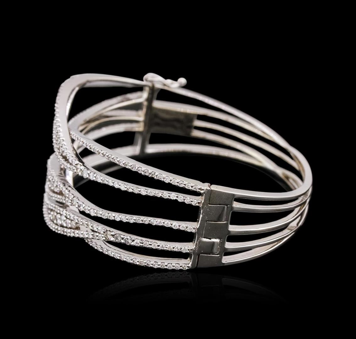 One electronically tested 14KT white gold ladies cast diamond bangle bracelet with a hidden box clasp with a bright polish finish. Condition is new. Containing: Three Hundred Forty-Seven prong set round brilliant cut diamonds, measuring 2.50 - 1.30 x 1.14mm (depth est.) approximate total weight of 347 Stones = 3.99ct. Clarity: SI-1 to I-1. Color: H - I, Cut is Good. All diamonds are graded in the mounting, unless otherwise stated. Total Weight of Diamonds 3.99ct. Total Weight of Bangle Bracelet 35.50 grams. GGL Appraised.