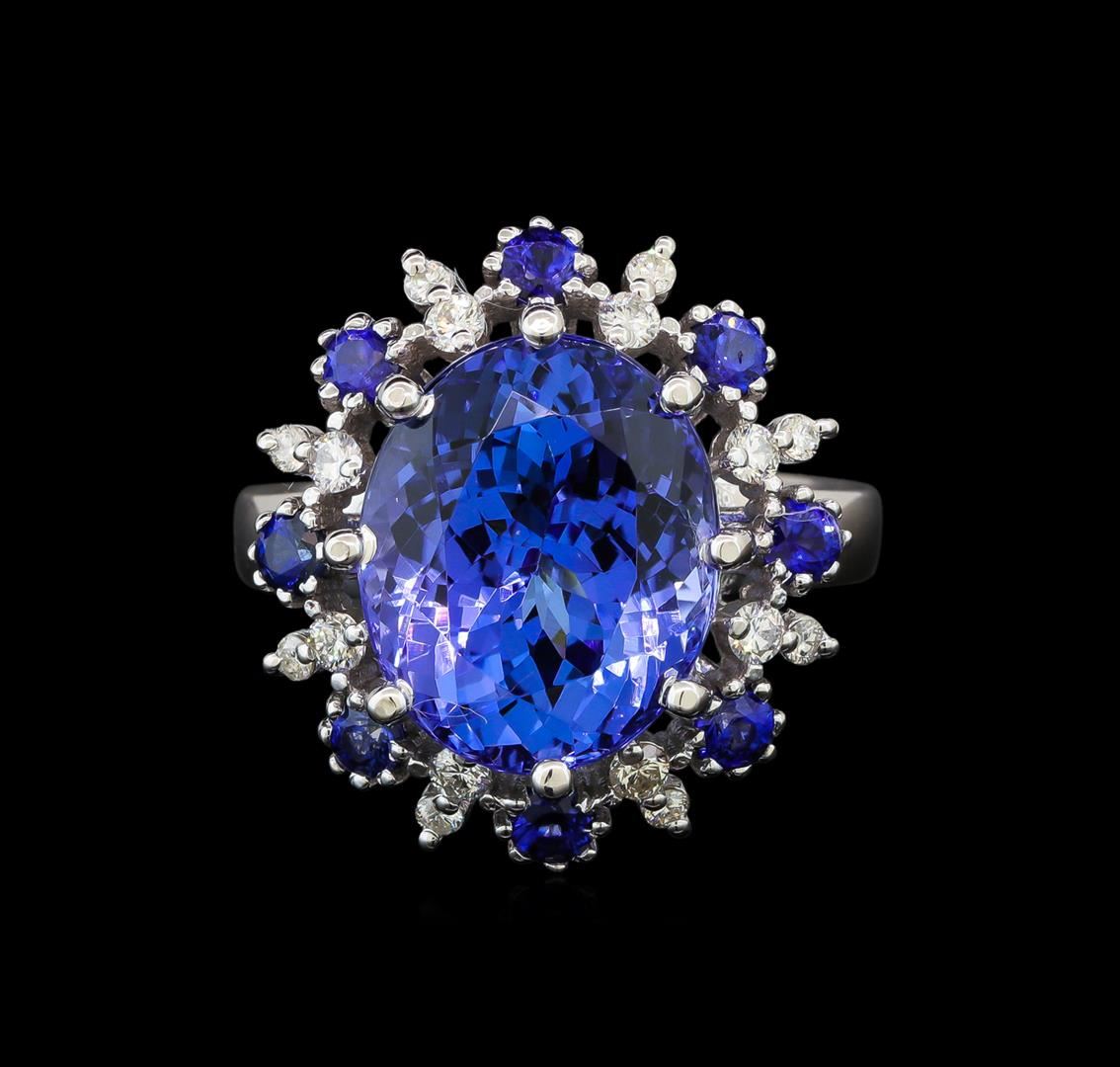 14KT White Gold 9.22 ctw Tanzanite, Sapphire and Diamond Ring