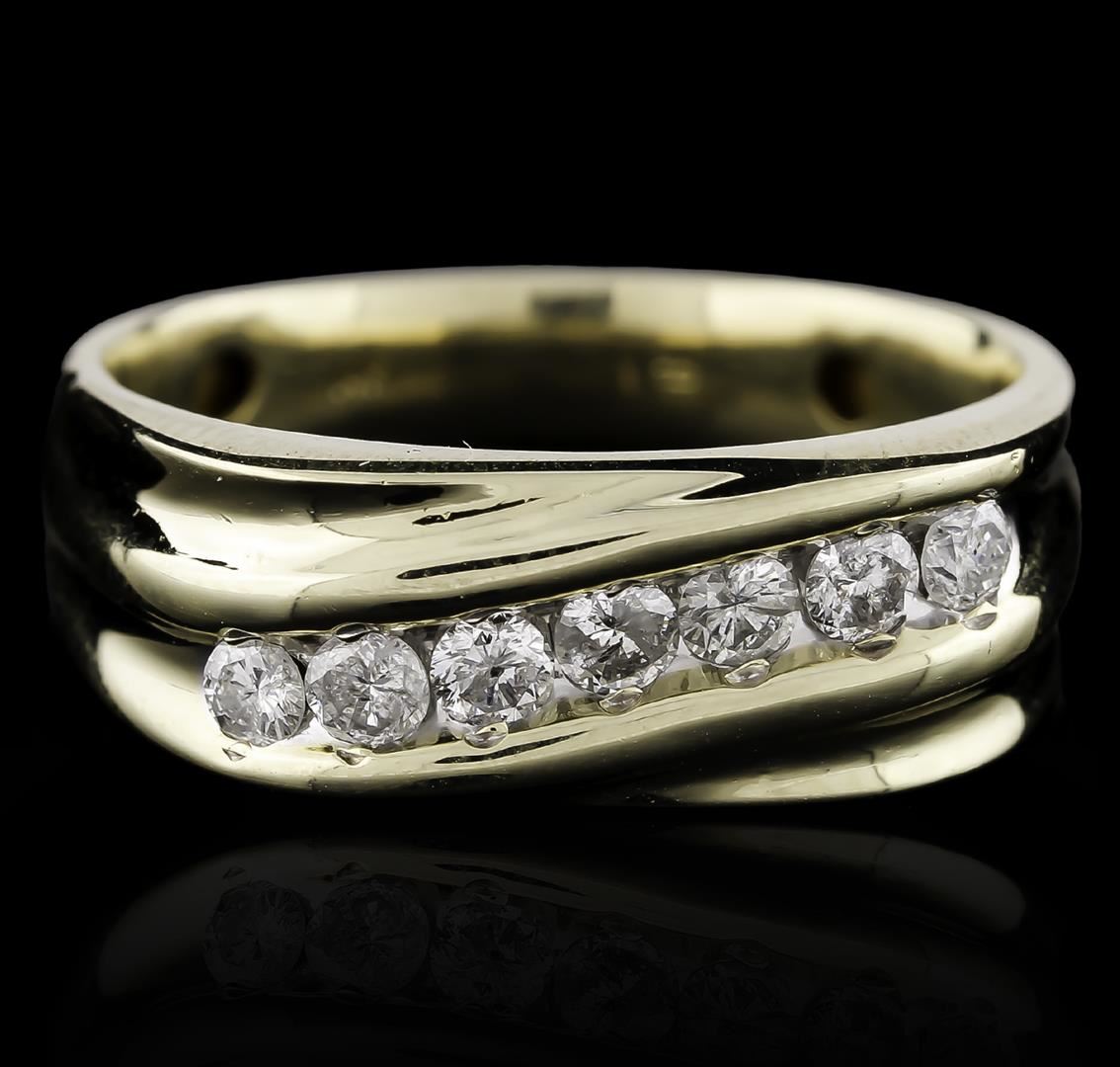 One gents ring featuring: 14KT yellow gold weighing 5.90 grams containing diamonds with a total weight of 0.75ct.