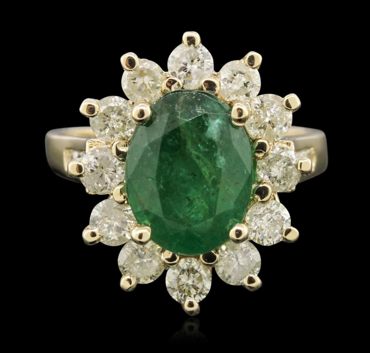 One ring featuring: 14KT yellow gold with a total weight of 5.72 grams, emerald with a total weight of 3.52ct, and diamonds with a total weight of 1.61ctw.
