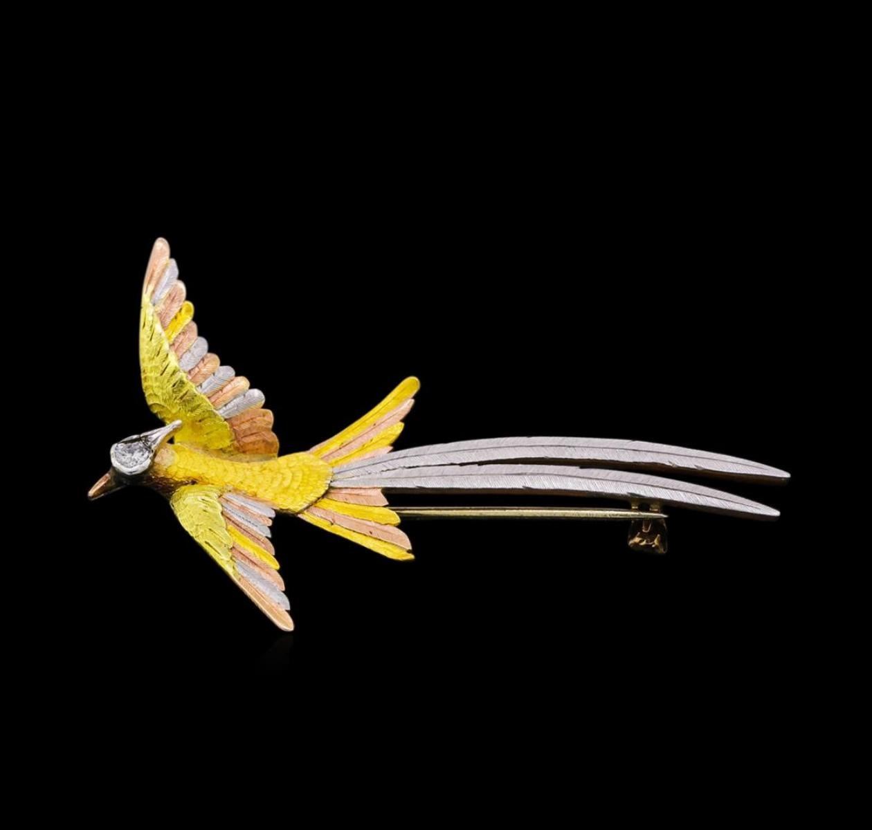 One 14KT Yellow Gold Diamond Bird Brooch.