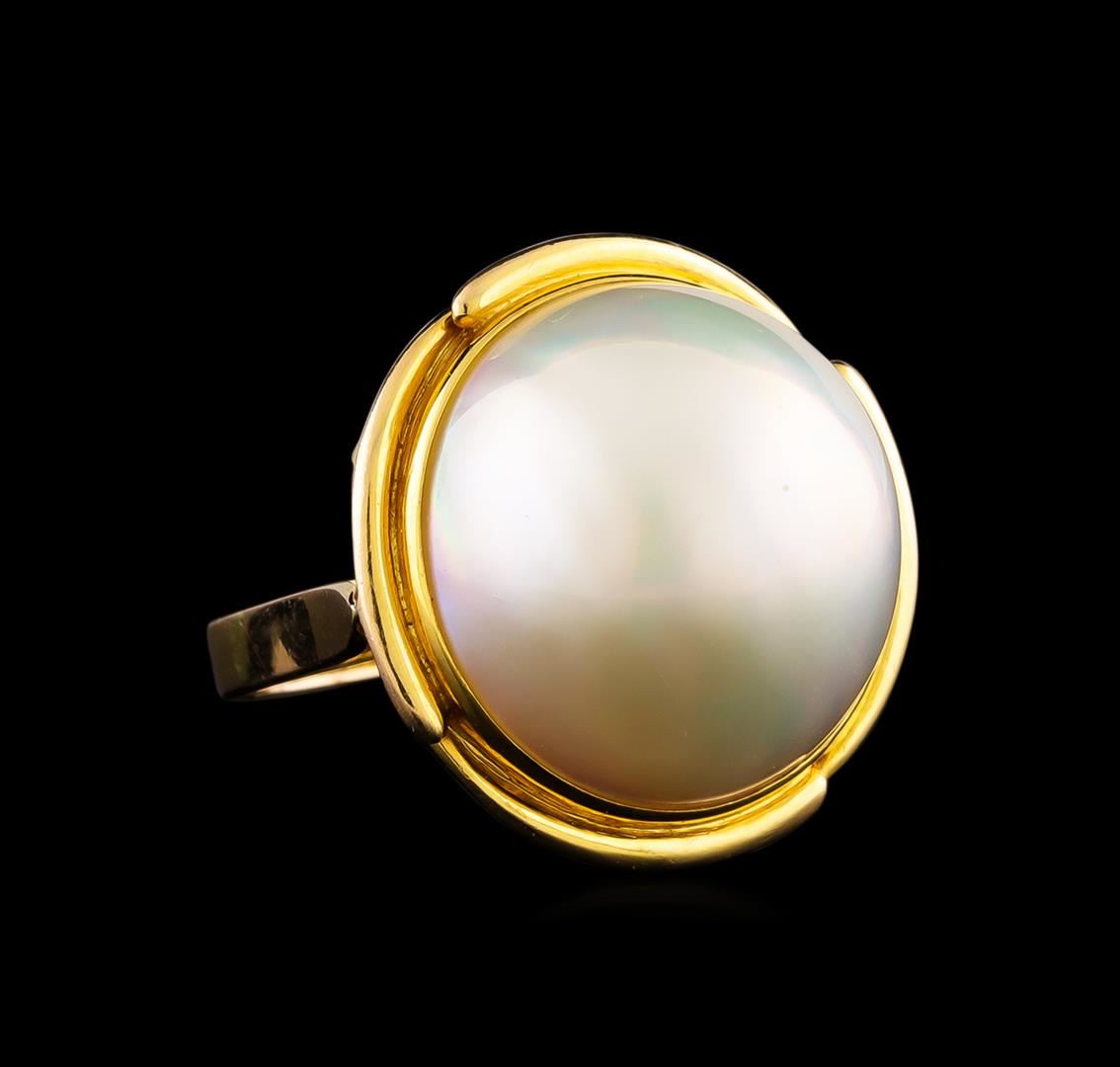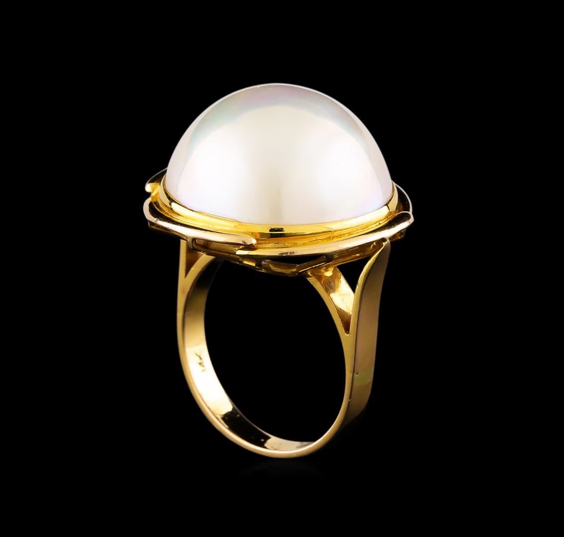 One set electronically tested 14KT yellow gold ladies cast pearl and diamond 4 piece suite with a bright polish finish. Identified with markings of "14K". Condition is new. Containing: Four mabe pearls, 16.4mm in size to 19.4mm in size. The pearls are white in color with a good luster, lightly blemished. Two Chinese freshwater pearls, 7.6mm in size to 5.5mm in size. The pearls are white in color with a good luster, baroque, moderately blemished. One prong set round brilliant cut diamond, measuring 2.00 - 2.00 x 1.20mm (depth est.) approximate weight of 0.03ct. Clarity: I-2. Color: K, Cut is Good. Colored gemstones are presumed to have been subjected to commonly used enhancement processes. All diamonds and colored gemstones are graded in the mounting, unless otherwise stated. Total Weight of Diamonds 0.03ct. Total Weight of 4 Piece Suite 33.30 grams. GGL Appraised.