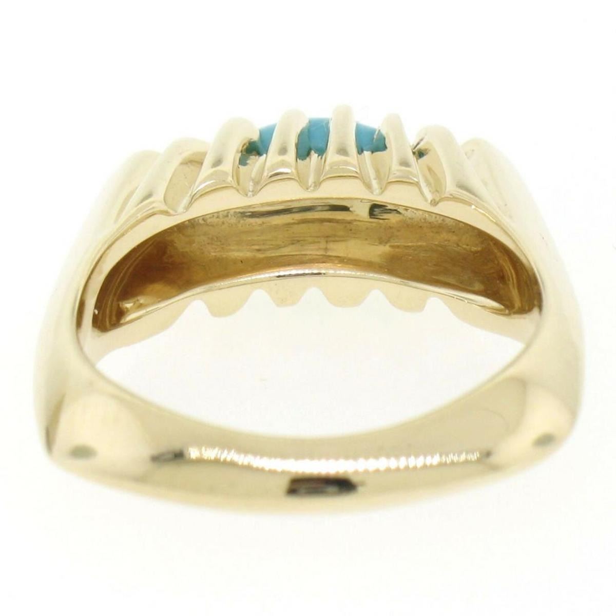 One Vintage 14k Yellow Gold Ribbed Marquise Cabochon Robin Egg Turquoise Solitaire Ring Size 4. Item Details: Material: 14K Solid Yellow Gold, Weight: 5.20 Grams, Stone(s): (1) Natural Genuine Turquoise - Oval Cabochon Cut - Multi-Prong Set - Robin's Egg Blue Color - 8.0x3.5mm / 0.65ct (approx.), Ring Size: 4.0, Ring Width: 5.95mm, Ring Height: 7.06mm rise off the finger, Condition: Vintage Ring. Like New!,
