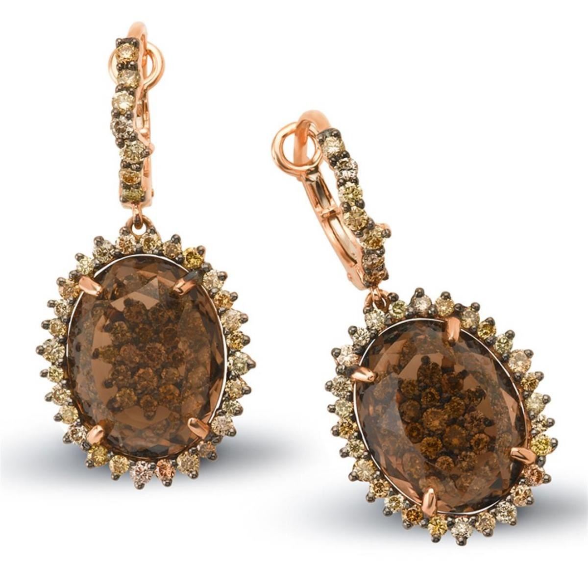 One 14k Rose Gold 14.45CTW Multicolor Dia and Smokey Quartz Earring, (SI1-SI2/Gold) - Product Specification: Stone: Diamond Stone 2: Smokey Quartz Stone 2 Clarity: SI1-SI2 Stone 2 Custom: FANCY YELLOW Stone 2 Weight: 1.58 Stone 3: Diamond Stone 3 Clarity: 1 Stone 3 Color: No Stone 3 Custom: Women Stone Color: Gold Stone type: 14 Weight: 1 Width: 15.0mm