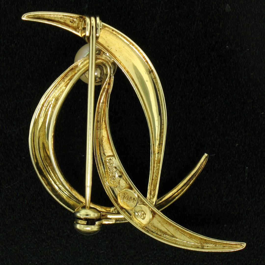 One German Solid 14k Yellow Gold 5.9mm Round Cultured Pearl Textured Bird Brooch Pin. Item Details: Material: 14K Solid Yellow Gold , Total Weight: 4.7 Grams, Stone(s): (1) Genuine Cultured Pearl - Golden White Color w/ Amazing Pink Overtones - Outstanding Luster - 5.90mm (approx.), Overall Height: 29.5mm, Overall Length: 33.3mm, Overall Thickness: 7.75mm, Condition: Estate piece in like new condition!