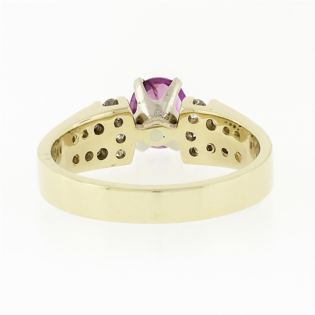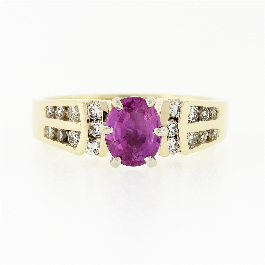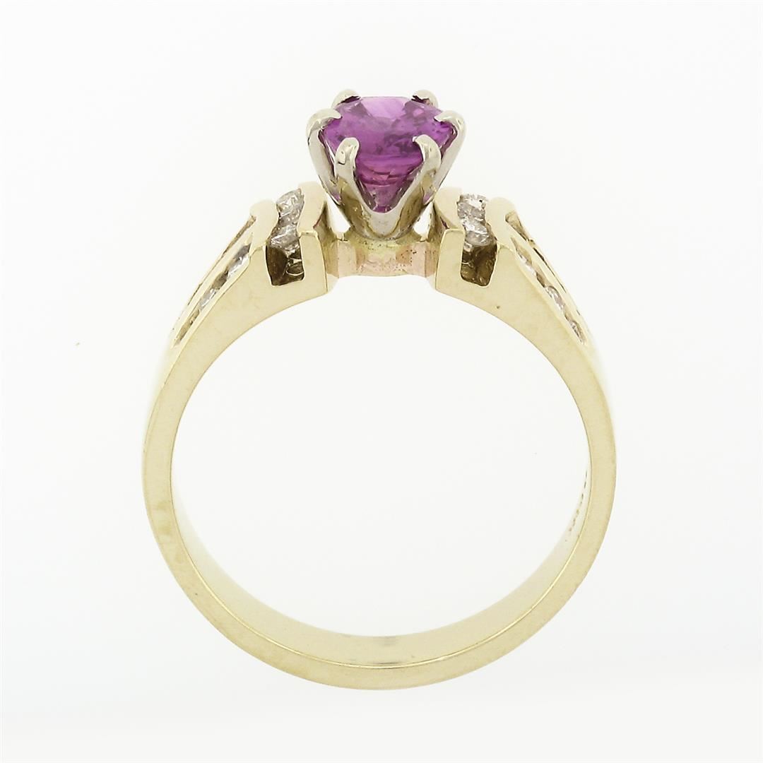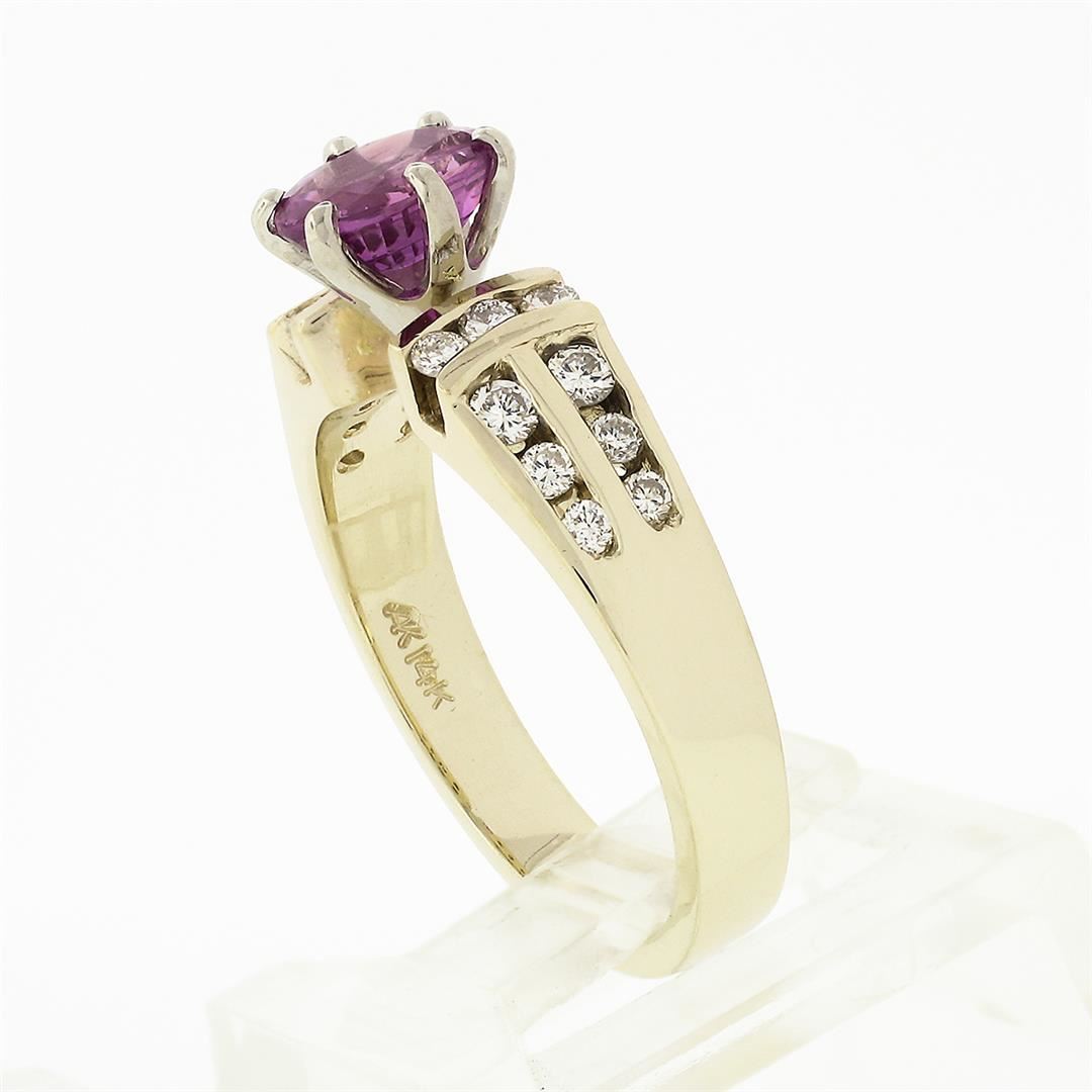 14k TT Gold 1.18 ctw Pink Sapphire Solitaire Round Diamond Channel Engagement Ri