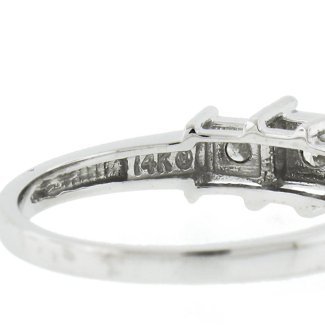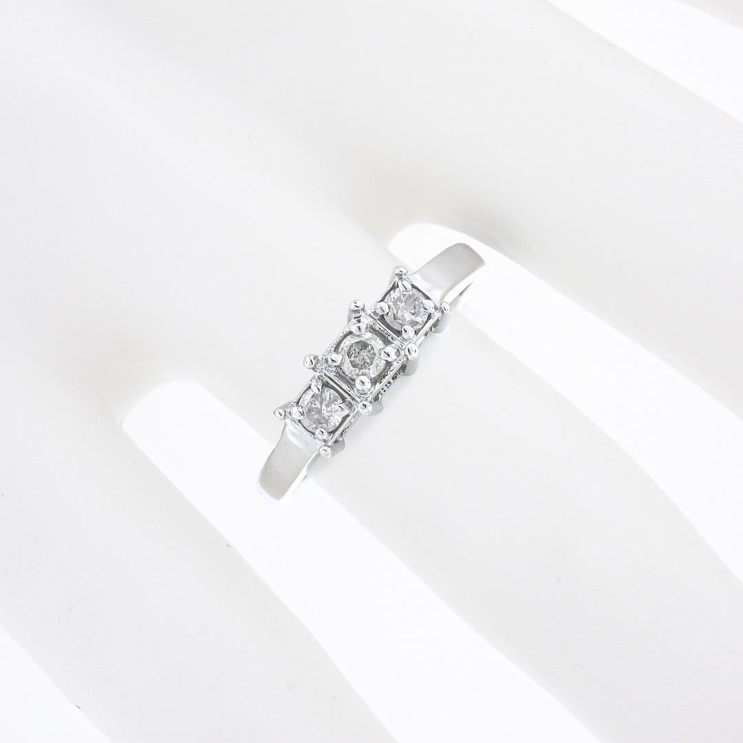 A solid 14k white gold 3 stones ring, with 3 round cut natural diamonds (J - I3 ; 0.22ctw). The ring is size 7.0, weighs a total of 2.67 grams, and measures 5.25mm wide.