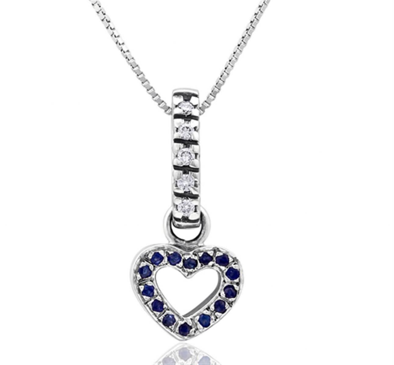 One 14k White Gold 0.35CTW Diamond and Blue Sapphire Pendant, (H-I) - Product Specification: Stone: Diamond Stone 2 Shape: Round Stone 2 Type: Blue Sapphire Stone 2 Weight: 0.25 Stone 3 Custom: Women Stone Color: H-I Stone Color to: I Stone Weight: 0.1 Weight: 1 Width: 12.0mm