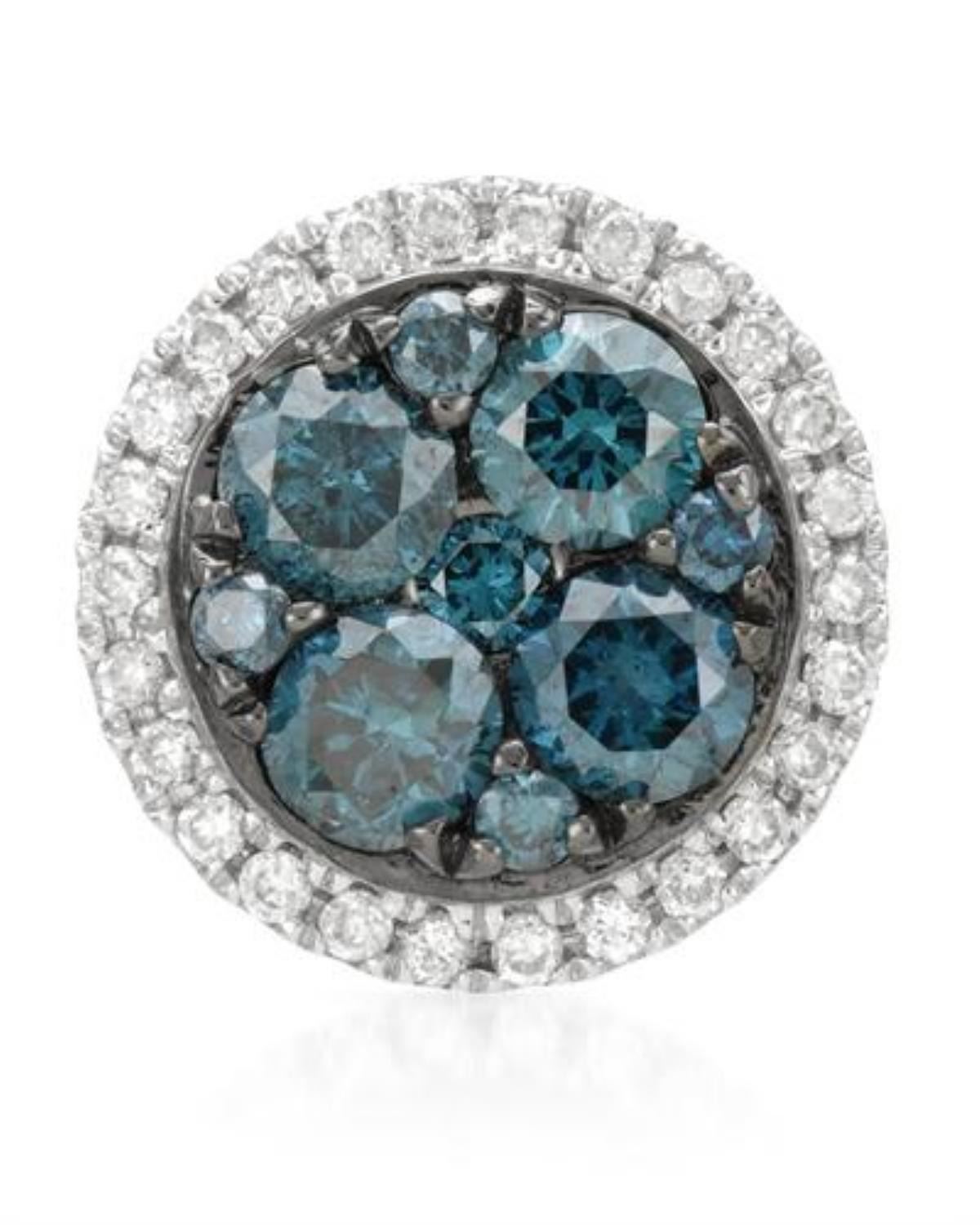 One 14k White Gold 0.46CTW Diamond and Blue Diamonds Pendant, (SI/H) - Product Specification: Stone: Diamond Stone 2: Blue Diamonds Stone 2 Weight: 0.39 Stone 3 Custom: Women Stone 4 Custom: SI / H Stone Clarity: SI Stone Color: H Stone Weight: 0.07 Weight: 1 Width: 9.0mm