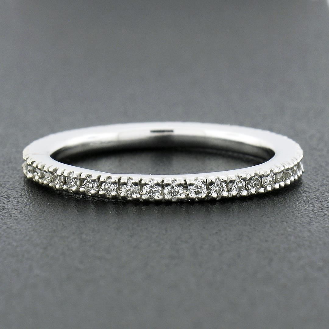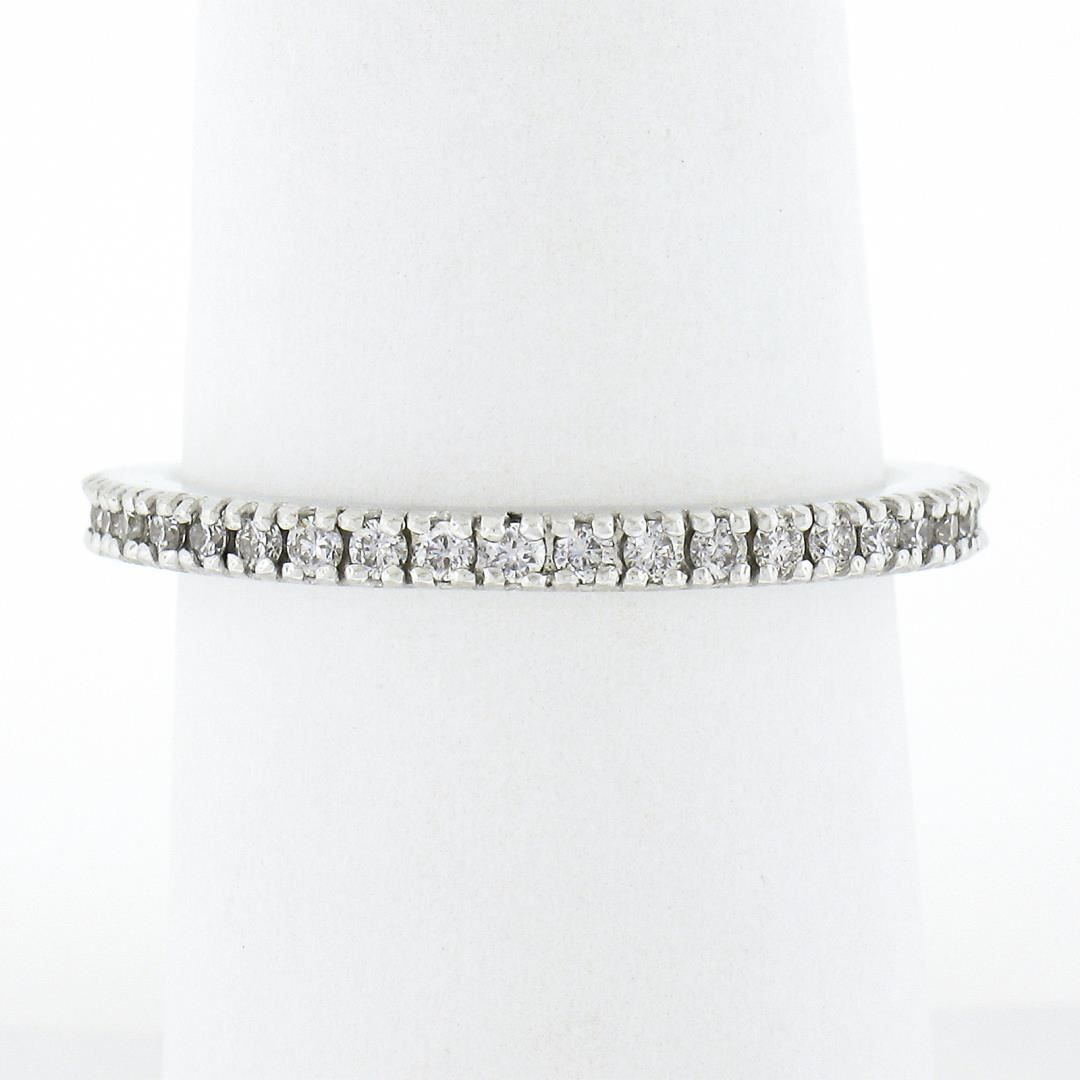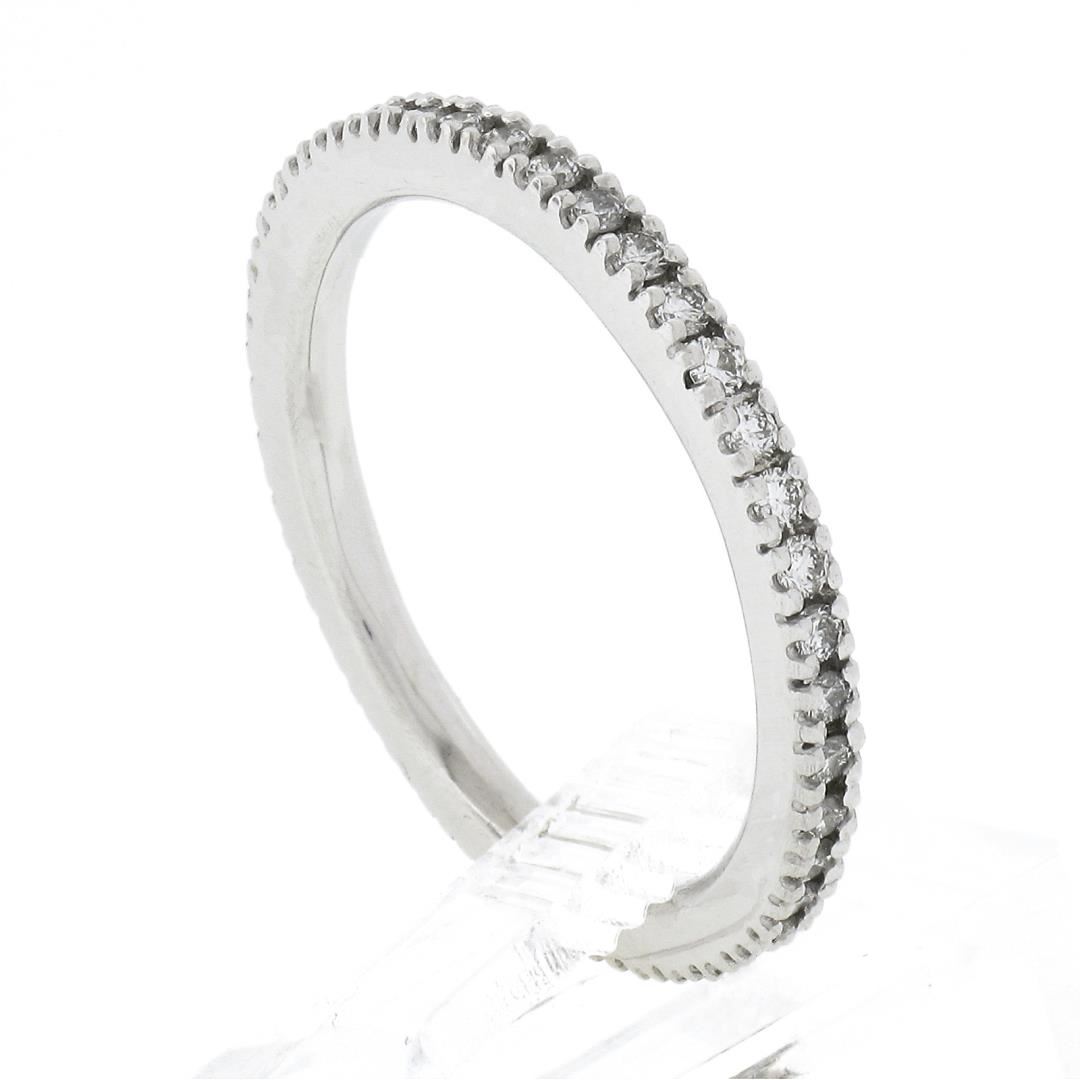 A solid 14k white gold eternity band ring, with 40 round cut natural diamonds (G/H - VS2/SI1 ; 0.55ctw). The ring is size 7.5, weighs a total of 2.70 grams, and measures 2mm wide.