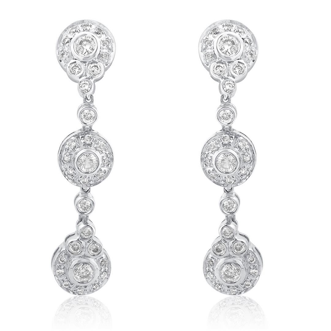 One Pair 14k White Gold 0.75CTW Diamond Earring, (I1-I2/H) - Product Specification: Stone: Diamond Stone 3 Custom: Women Stone 4 Custom: I1-I2 / H Stone Clarity: I1-I2 Stone Color: H Stone Count: 68 Stone type: Round Stone Weight: 0.75 Weight: 1 Width: 7.0mm