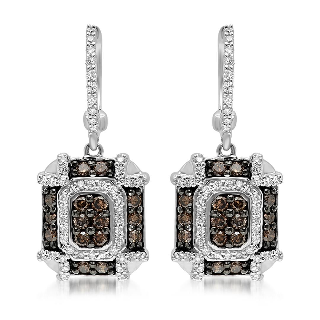 One Pair 14k White Gold 1.04CTW Diamond and Brown Diamonds Earring, (SI3/G) - Product Specification: Stone: Diamond Stone 2: Brown Diamonds Stone 2 Weight: 0.64 Stone 3 Custom: Women Stone 4 Custom: SI3 / G Stone Clarity: SI3 Stone Color: G Stone Weight: 0.4 Weight: 1 Width: 11.0mm
