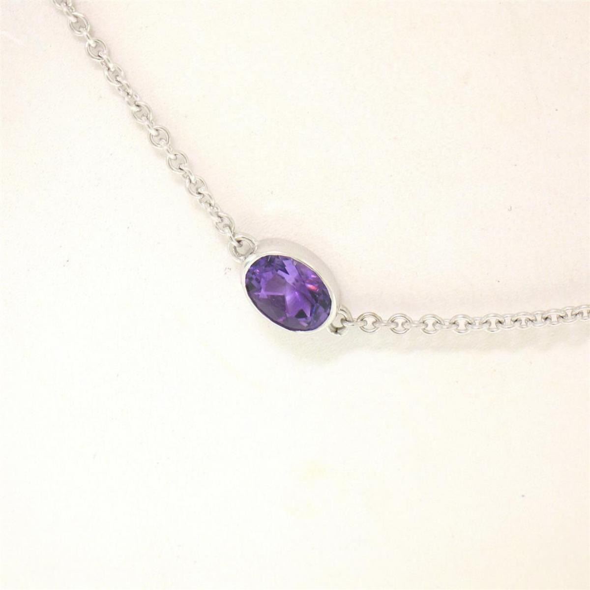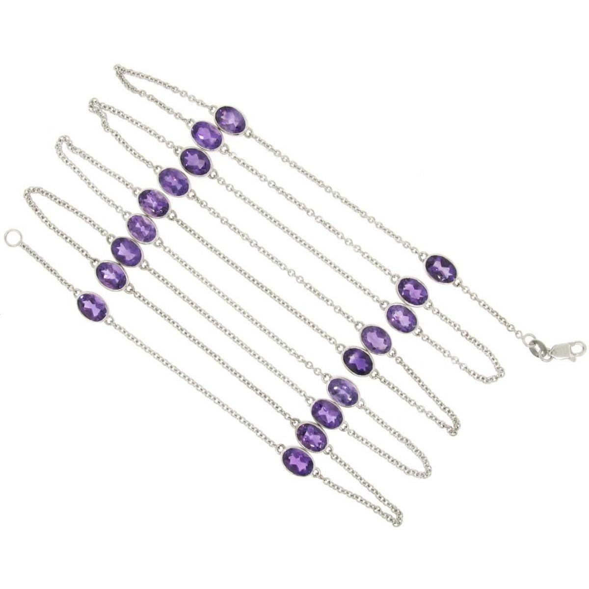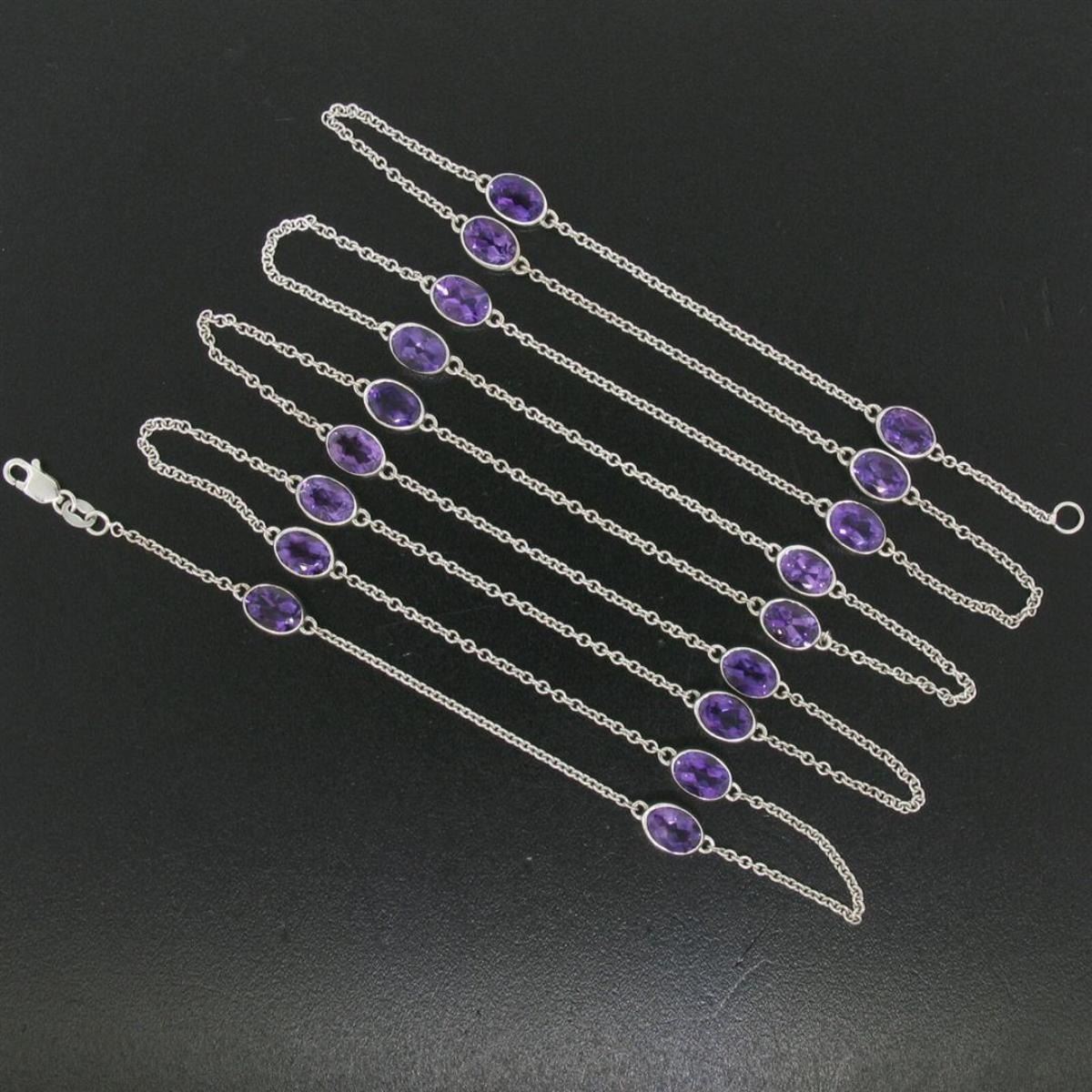 One 14k White Gold 19.72ctw 18 Station Oval Amethyst by the Yard 38" Cable Link Chain Necklace. Item Details: Material: 14k Solid White Gold, Weight: 19.20 Grams, Stone(s): (18) Natural Genuine Amethysts - Oval Cut - Bezel Set - Rich Royal Purple Color, Total Carat Weight: 19.72 (approx.), Chain Type: Cable Link, Chain Length: 38 Inches, Clasp: Lobster Claw, Width: 5.91mm, Thickness: 3.30mm, Condition: New w/o Tag