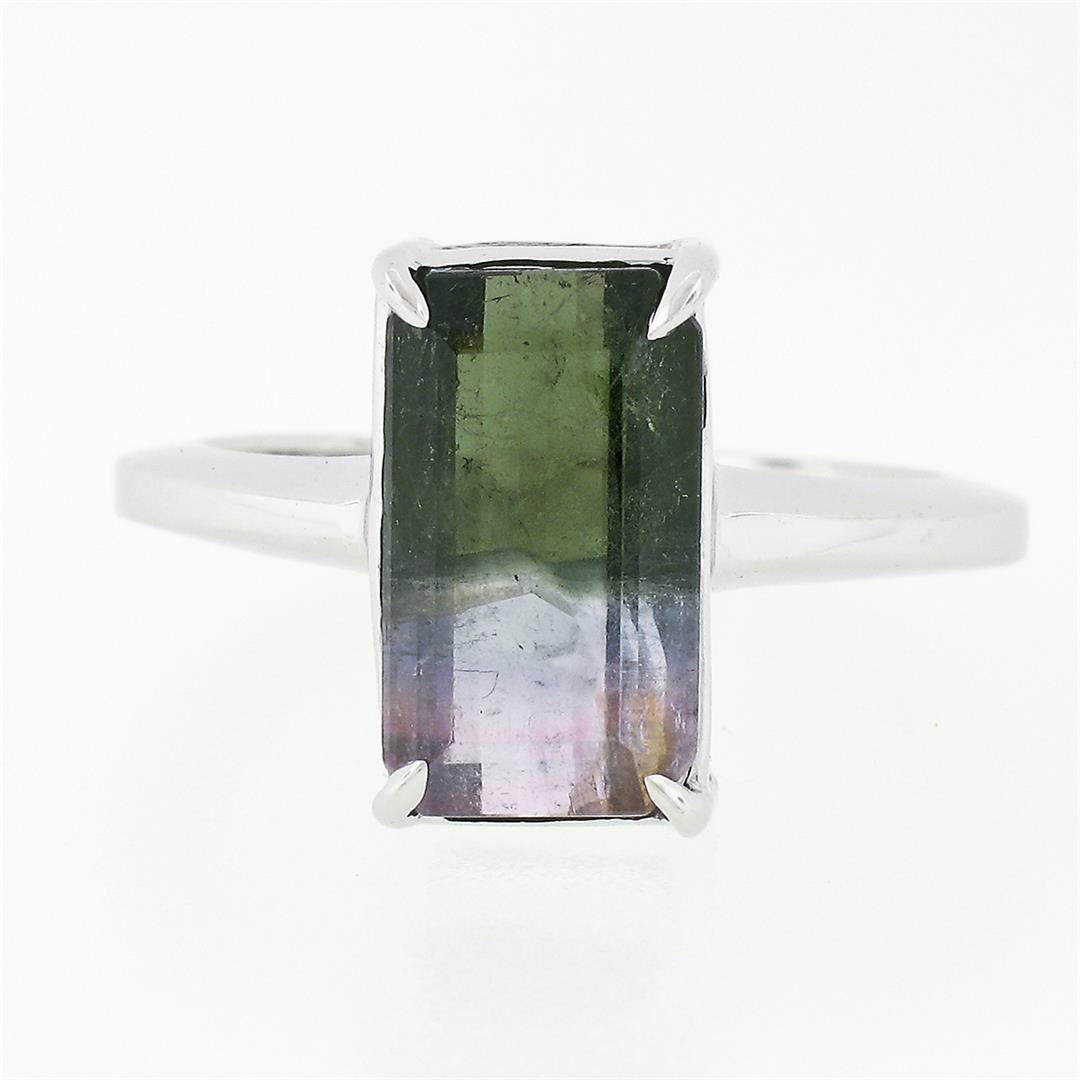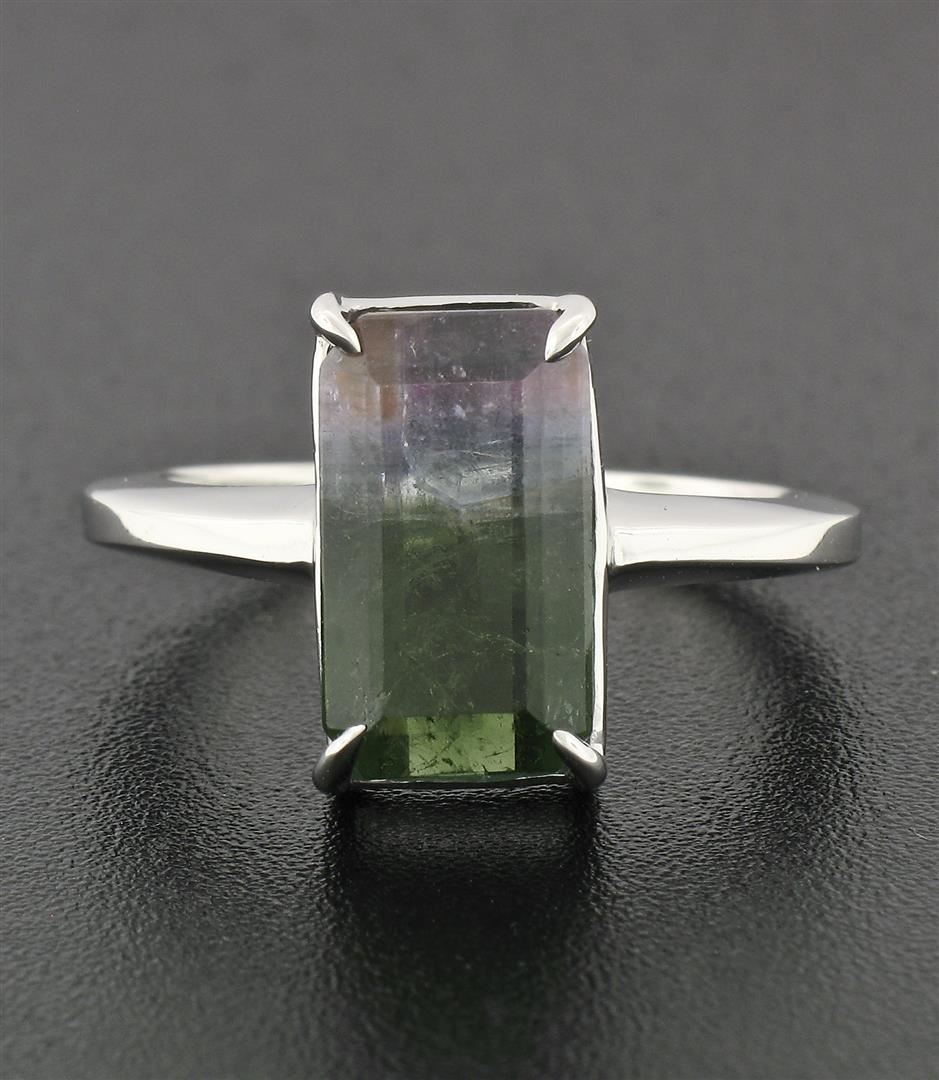 14k White Gold 3.44 ctw Emerald Pink & Green Watermelon Tourmaline Solitaire Rin
