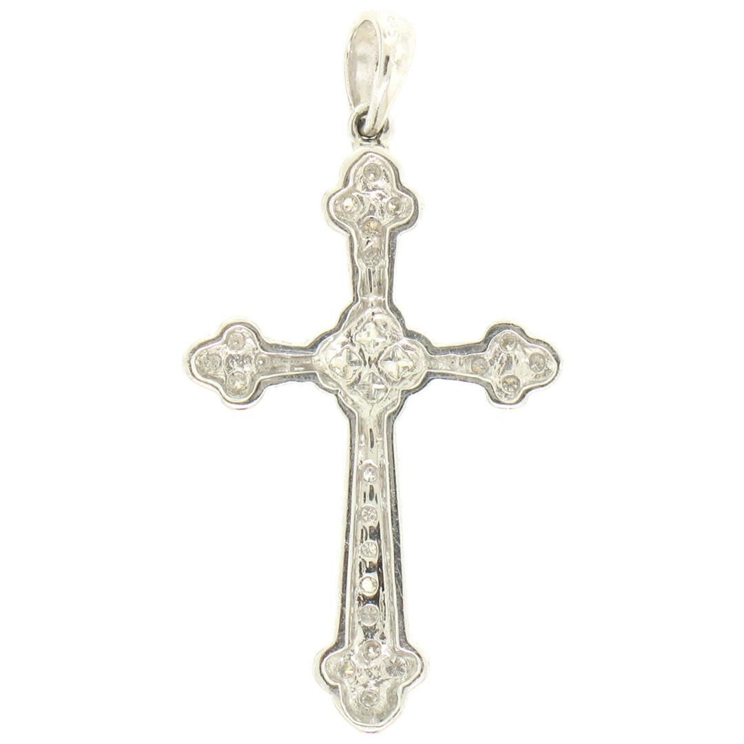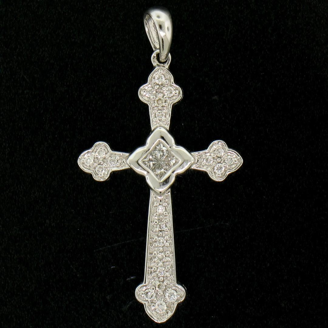 One NEW 14k White Gold .33ctw Invisible Princess & Pave Round Diamond Cross Pendant. Item Details: Material: 14K Solid White Gold, Weight: 2.5 Grams, Stone(s): (4) Natural Genuine Diamonds - Princess Cut - Invisible Set - SI1 Clarity - G/H Color, (21) Natural Genuine Diamonds - Round Brilliant Cut - Pavé Set - SI1 Clarity - G/H Color, Total Carat Weight: 0.33ctw (approx.), Chain Type: Not Included, Width: 17.86mm, Height (w/ Bail): 34.47mm. Height (w/o Bail): 29.64mm. Thickness: 3.66mm. Bail Measurements (Inside): 3.10x4.15mm. Condition: Brand New w/o Tag!