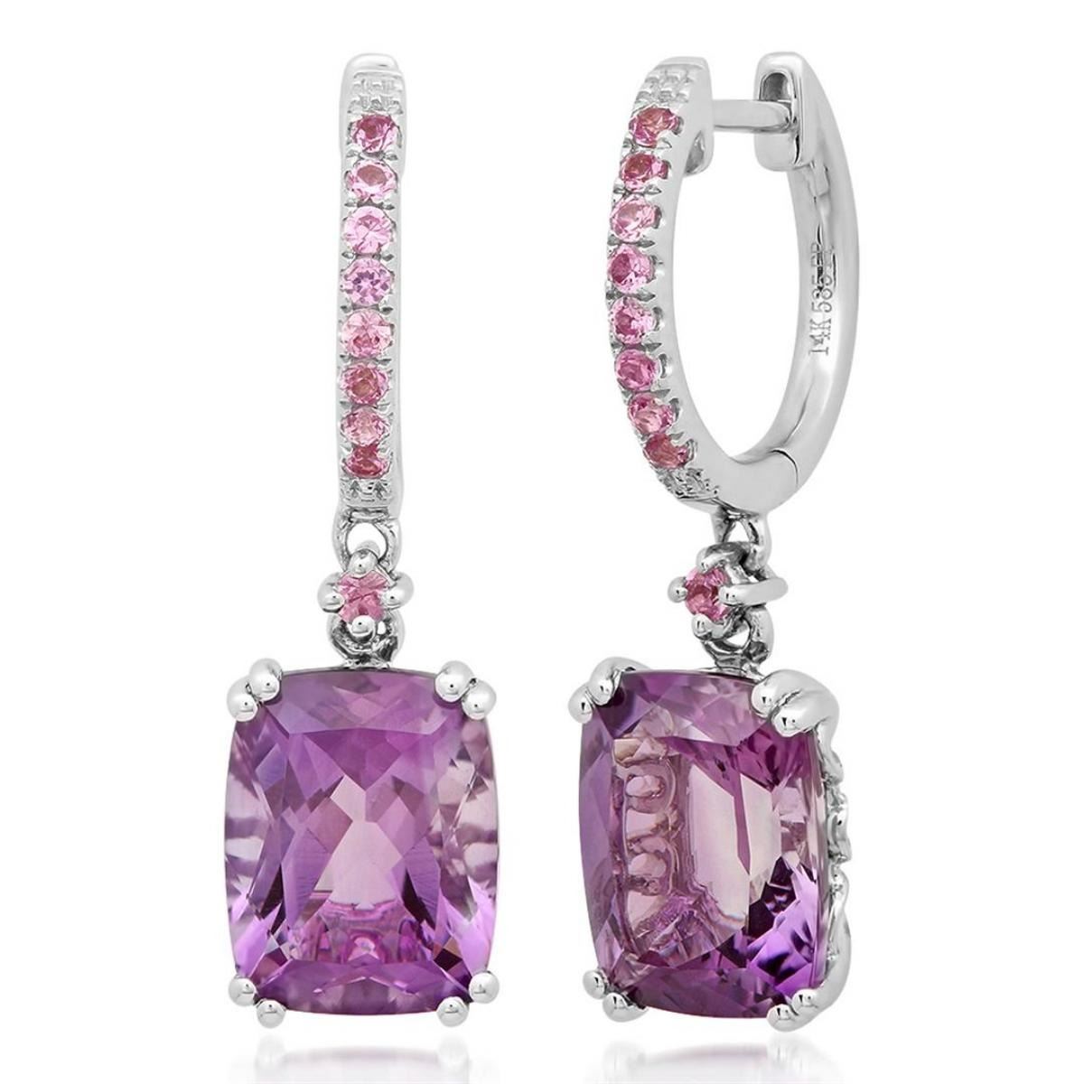 One 14k White Gold 4.43CTW Amethys and Pink Sapphire Earring - Product Specification: Stone: Amethys Stone 2: Pink Sapphire Stone 2 Weight: 0.23 Stone 3: 6 Stone 3 Custom: Women Stone Weight: 4.2 Weight: 1 Width: 8.0mm