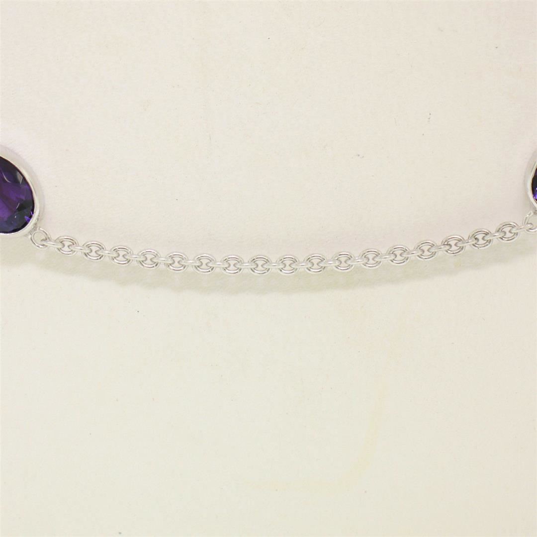 One 14k White Gold 8.00ctw 8 Station "Amethyst by the Yard" 20" Cable Link Chain Necklace. Item Details: Material: 14k Solid White Gold, Weight: 8.6 Grams, Stone(s): (8) Natural Genuine Amethysts - Oval Cut - Bezel Set - Rich Royal Purple Color, Total Carat Weight: 8.00 (approx.), Chain Type: Fine Cable Link, Chain Length: 20 Inches, Clasp: Lobster Claw, Width: 5.91mm, Thickness: 3.30mm, Condition: New w/o Tag