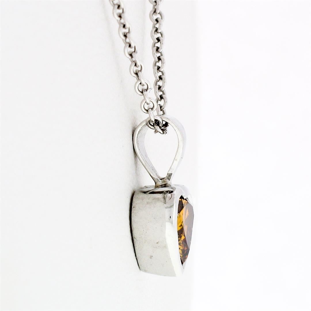 An estate solid 14k white gold heart pendant necklace, with 1 Gia certified heart brilliant cut natural diamond (fancy deep brown-orange color - I1 ; 0.70ct). The pendant weighs a total of 3.0 grams, measures 12.3x7.9mm including the bail, and 18 inch cable link chain. Comes with all original relevant certifications.