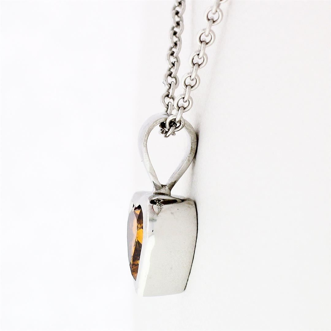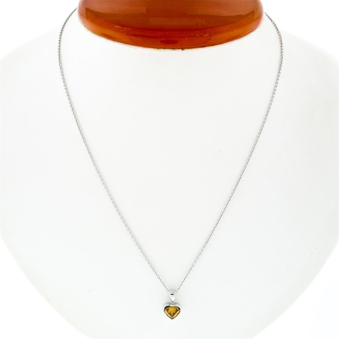 An estate solid 14k white gold heart pendant necklace, with 1 Gia certified heart brilliant cut natural diamond (fancy deep brown-orange color - I1 ; 0.70ct). The pendant weighs a total of 3.0 grams, measures 12.3x7.9mm including the bail, and 18 inch cable link chain. Comes with all original relevant certifications.