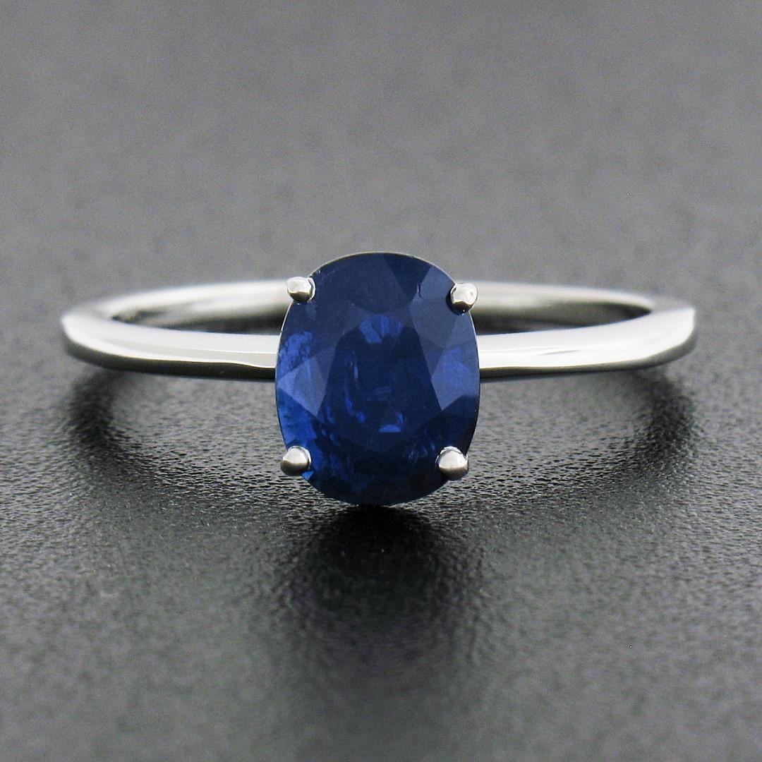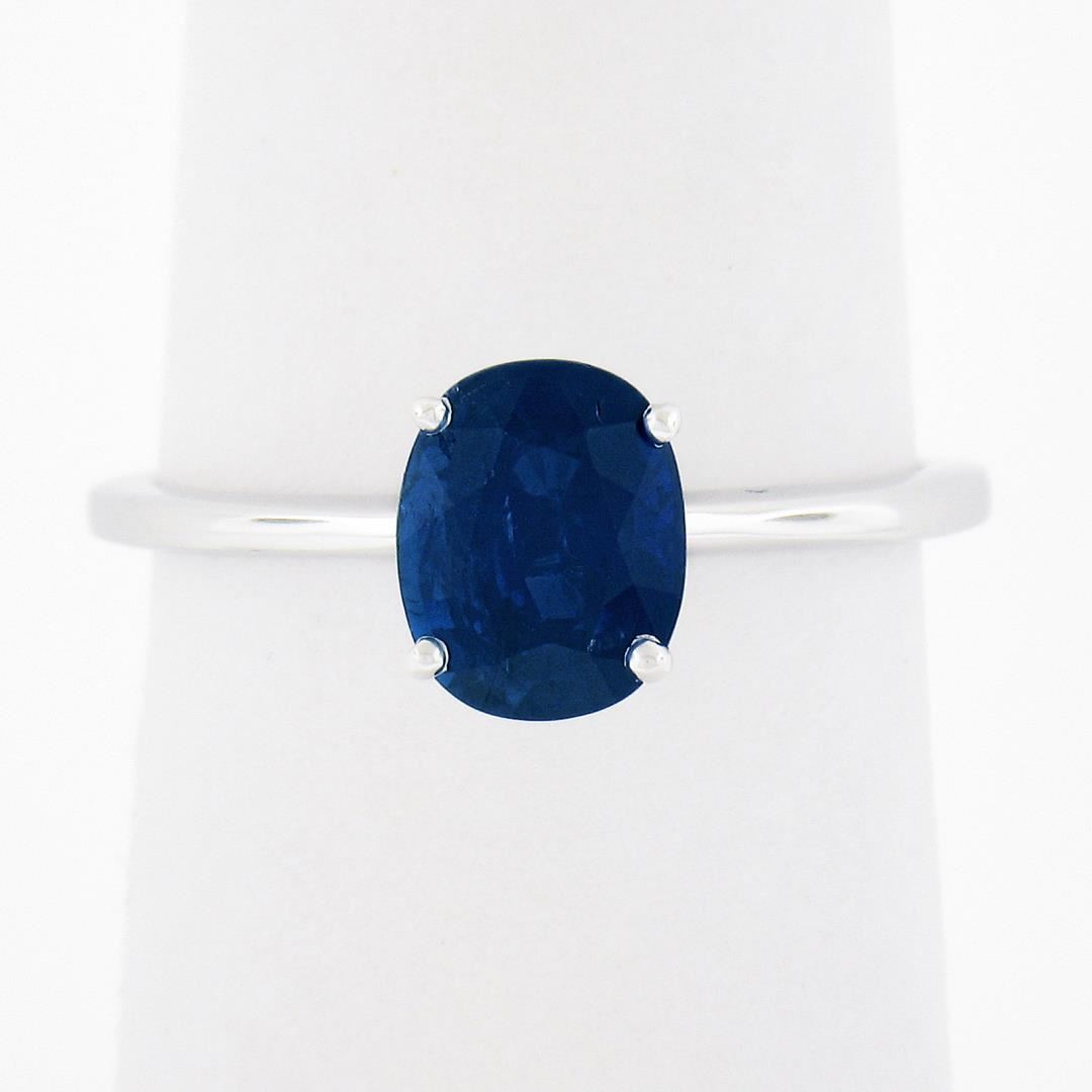 A solid 14k white gold solitaire ring, with 1 GIA graded oval natural sapphire (1.53ct). The ring is size 6.5, weighs a total of 1.91 grams, and measures 7.45mm wide. Comes with all original relevant certifications.