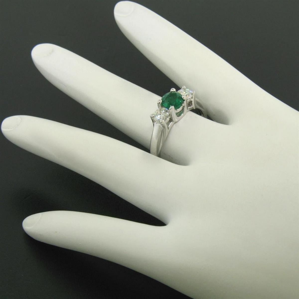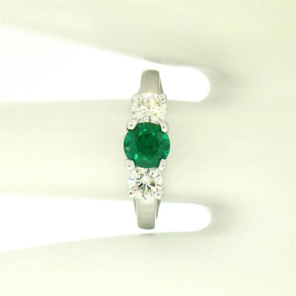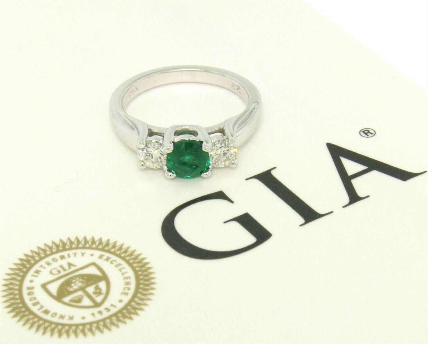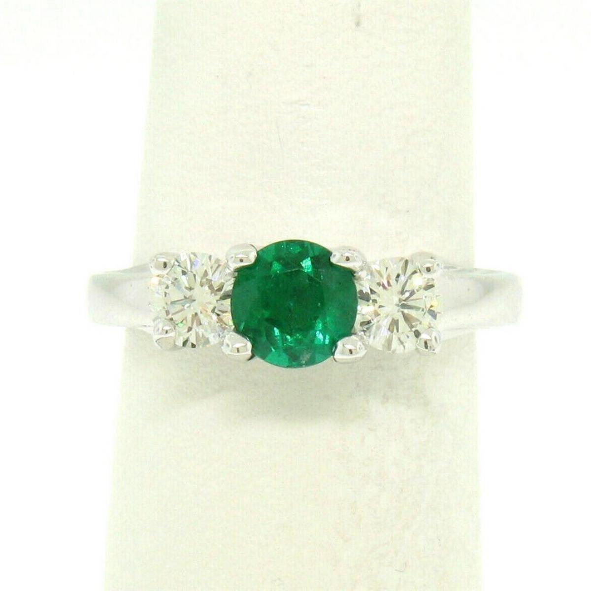 One 14k White Gold GIA Emerald & Diamond 3 Stone 1.50ctw Engagement Right Hand Ring. Item Details: Material: 14k Solid White Gold, Weight: 5.1 Grams, Stone(s): (1) Natural Genuine Emerald - Round Brilliant Cut - Prong Set - BEST COLOR/QUALITY MONEY CAN BUY - TOP DESIGNER QUALITY REALLY TRULY BREATHTAKING - 0.80ct, (2) Natural Genuine Diamonds - Round Brilliant Cut - Prong Set - VVS2 Clarity - G Color - 0.70ctw (approx.), Total Carat Weight: 1.50 (approx.), GIA REPORT #: 2171395387, Ring Size: 7.0 (We can custom size this ring.), Ring Width: 5.90mm Ring Height: 6.70mm rise off the finger Condition: NEW!