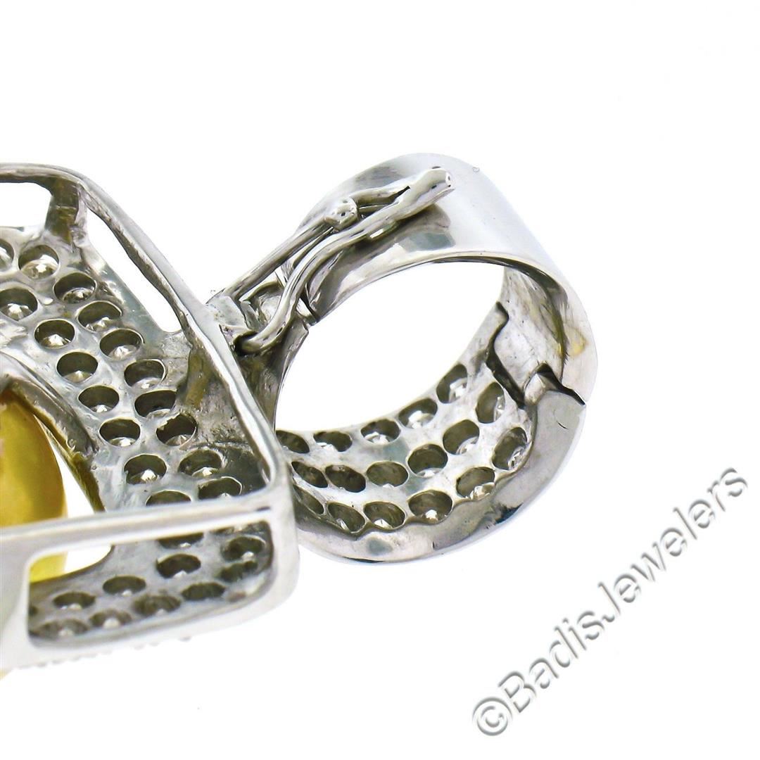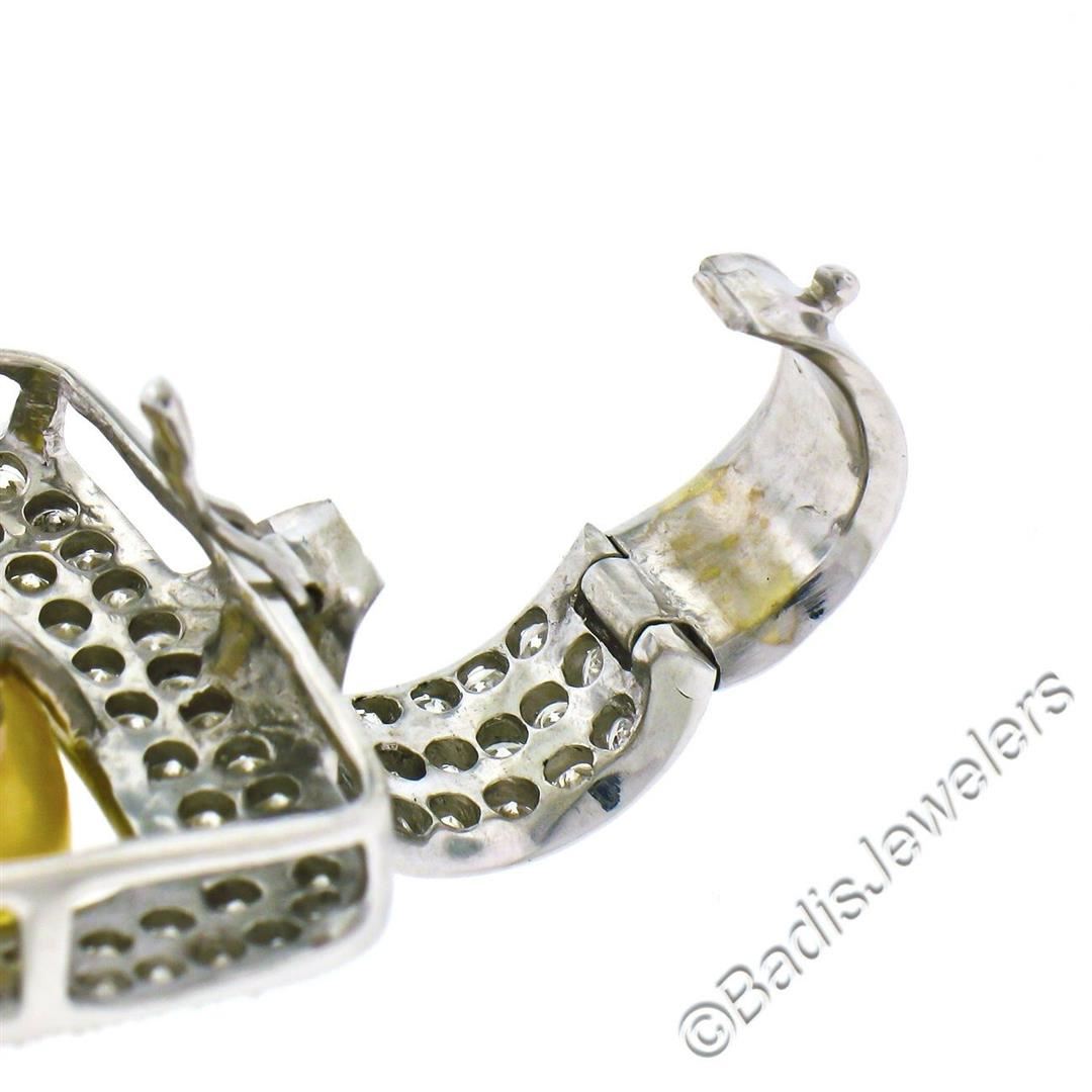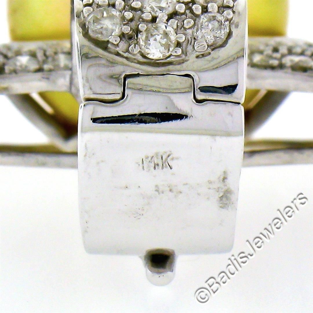 A like new 14kt white gold enhancer pendant featuring a 14.4mm round cultured pearl surrounded by 3.0ctw of round diamonds (G/H - SI2/I1). The pendant weighs a total of 13.34 grams, measures 39.5x25.6mm, and the inside of the bail measures 11.0x10.6mm.