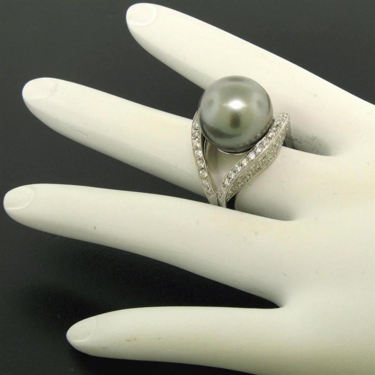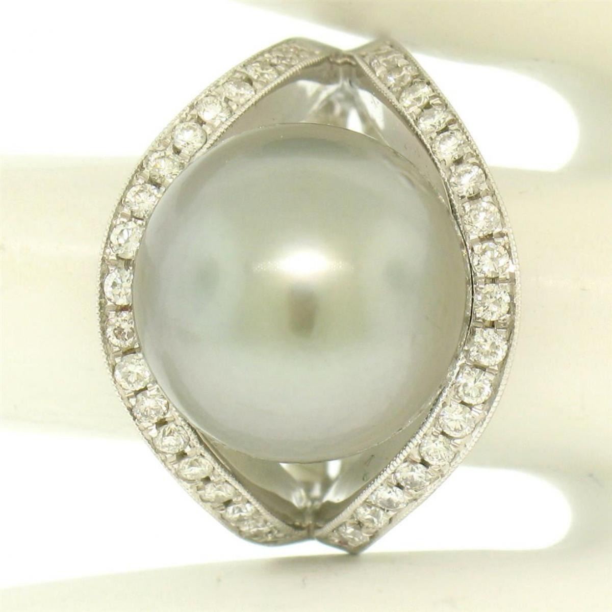 One 14k White Gold Large 14.5mm Tahitian Pearl Solitaire Ring w/ 2.00ctw Pave Diamonds. Item Details - Material: 14k Solid White Gold, Weight: 16.5 Grams Grams, Stone(s): (1) Natural Genuine Tahitian Pearl - Round Shape - Pure Gray Color - Magnificent Luster - 14.46mm Diameter (approx.), (104) Natural Genuine Diamonds - Round Brilliant Cut - Pavé Set - VS1/VS2 Clarity - F/G Color - 2.00ctw (approx.), Ring Size: 7.0, Ring Width: 18.23mm, Ring Height: 17.03mm rise off the finger, Condition: Like New!