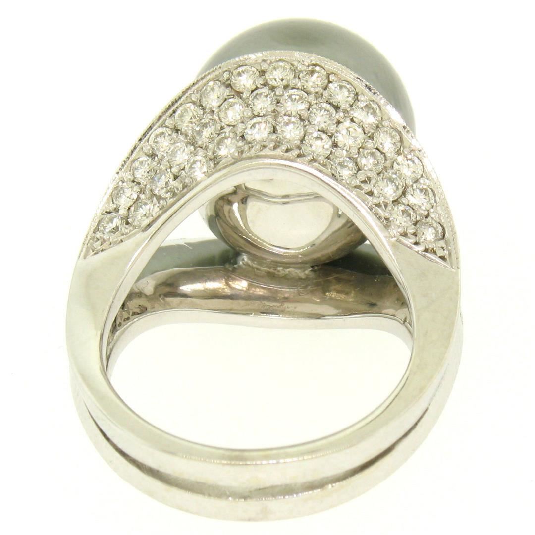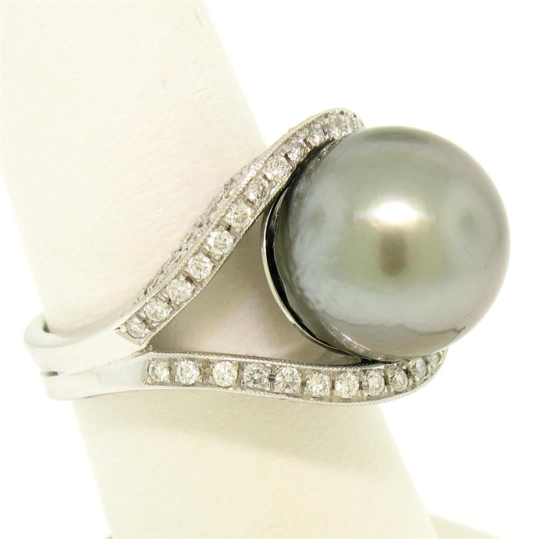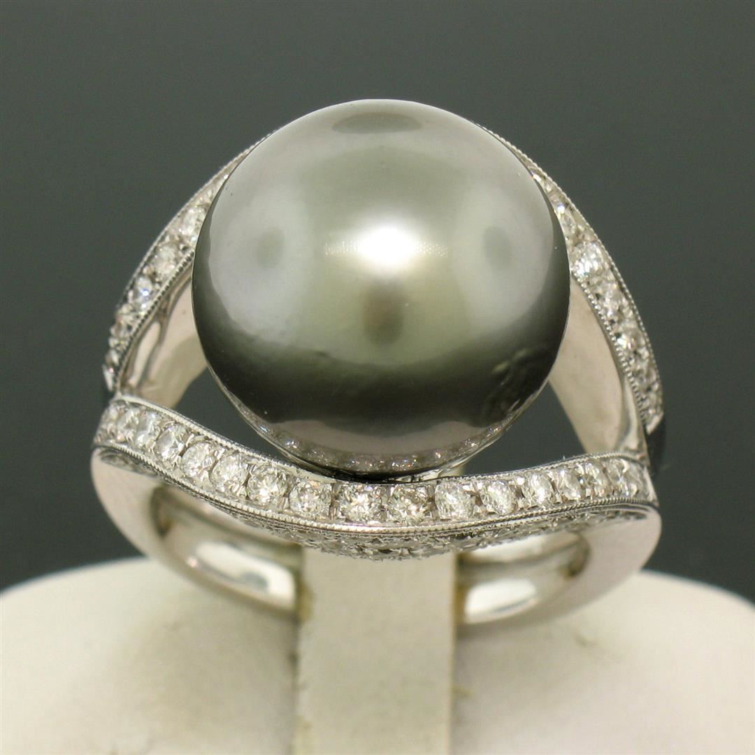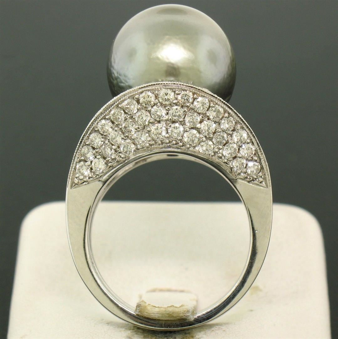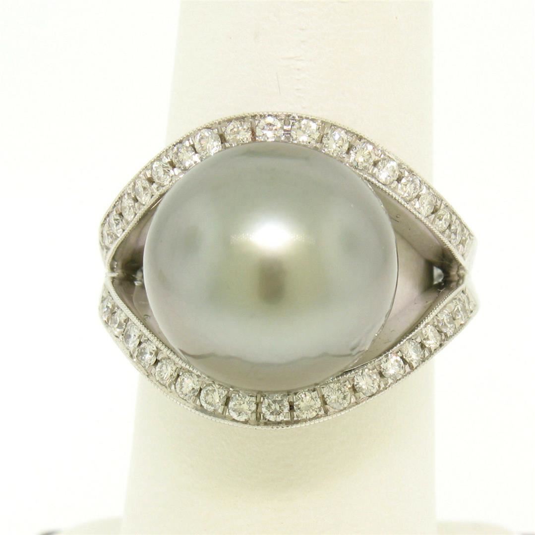 One 14k White Gold Large 14.5mm Tahitian Pearl Solitaire Ring w/ 2.00ctw Pave Diamonds. Item Details - Material: 14k Solid White Gold, Weight: 16.5 Grams Grams, Stone(s): (1) Natural Genuine Tahitian Pearl - Round Shape - Pure Gray Color - Magnificent Luster - 14.46mm Diameter (approx.), (104) Natural Genuine Diamonds - Round Brilliant Cut - Pavé Set - VS1/VS2 Clarity - F/G Color - 2.00ctw (approx.), Ring Size: 7.0, Ring Width: 18.23mm, Ring Height: 17.03mm rise off the finger, Condition: Like New!