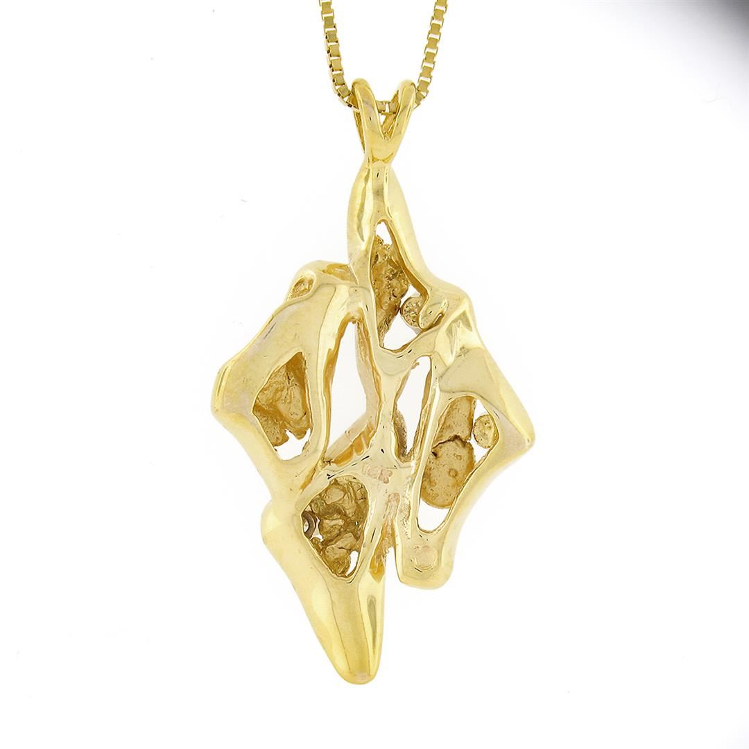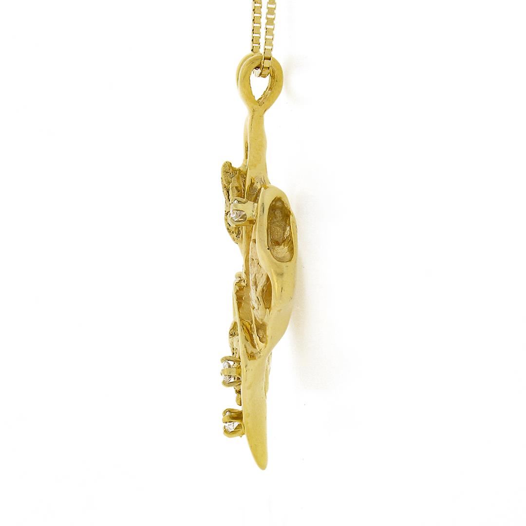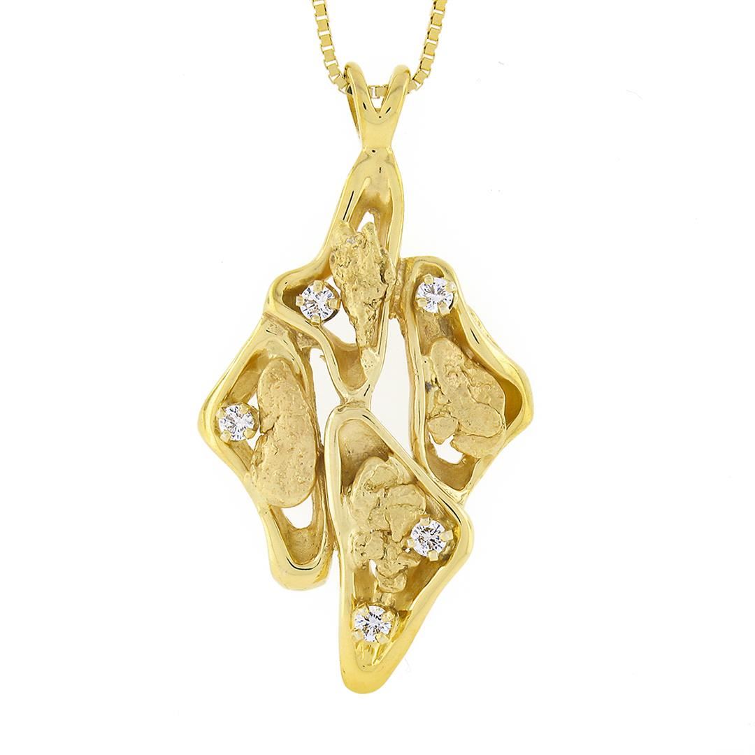 A solid 14k yellow gold pendant necklace, with 5 round brilliant cut natural diamonds (F/G - VS1/VS2 ; 0.25ctw). The pendant weighs a total of 12.67grams, measures 42.65x22.90mm including the bail, and 18 inch box link chain.