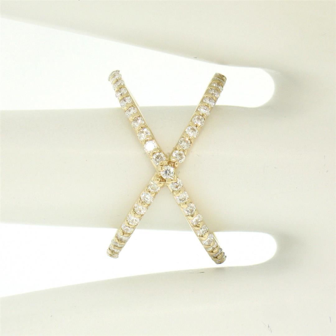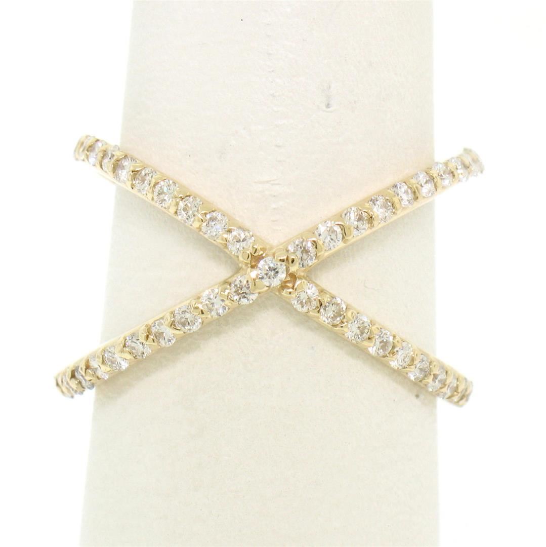 One NEW 14k Yellow Gold 0.50ctw 45 Round Brilliant Diamond Simple X Ex Cross Band Ring. Item Details: Material: 14k Solid Yellow Gold, Weight: 2.9 Grams, Stone(s): (45) Natural Genuine Diamonds - Round Brilliant Cut - Prong Set - G Color - VS2 Clarity, Total Carat Weight: 0.50, Ring Size: 6.25 (We can custom size this ring.), Ring Width: 13.13mm, Ring Height: 2.31mm rise off the finger, Condition: New w/o Tag