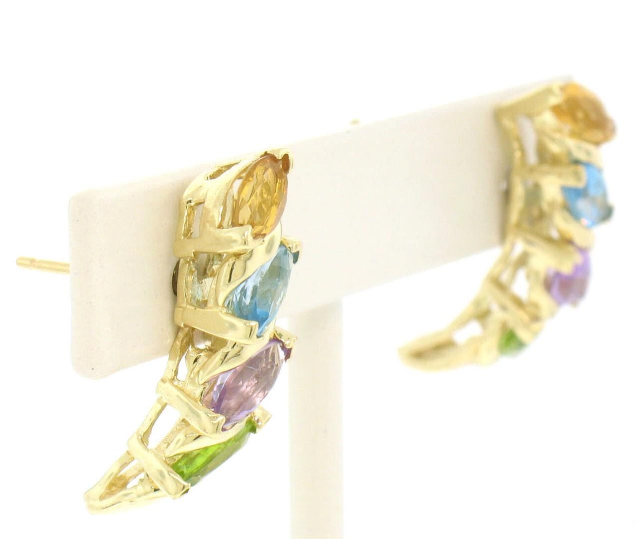 14k Yellow Gold 2.00ctw Marquise Cut Amethyst Peridot & Topaz Cuff Post Earrings. Please see photos and description for all available information. An estate solid 14k yellow gold cuff post earrings, featuring marquise cut of 4 natural topaz, 2 natural amethyst, 2 natural peridot (2.00ctw). The earrings measure approximately 21.30x6.07mm and weigh a total of 4.0 grams.