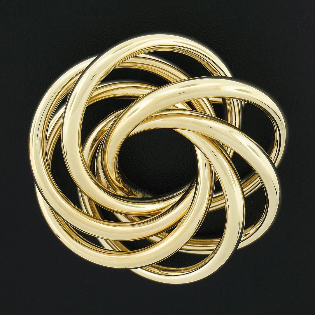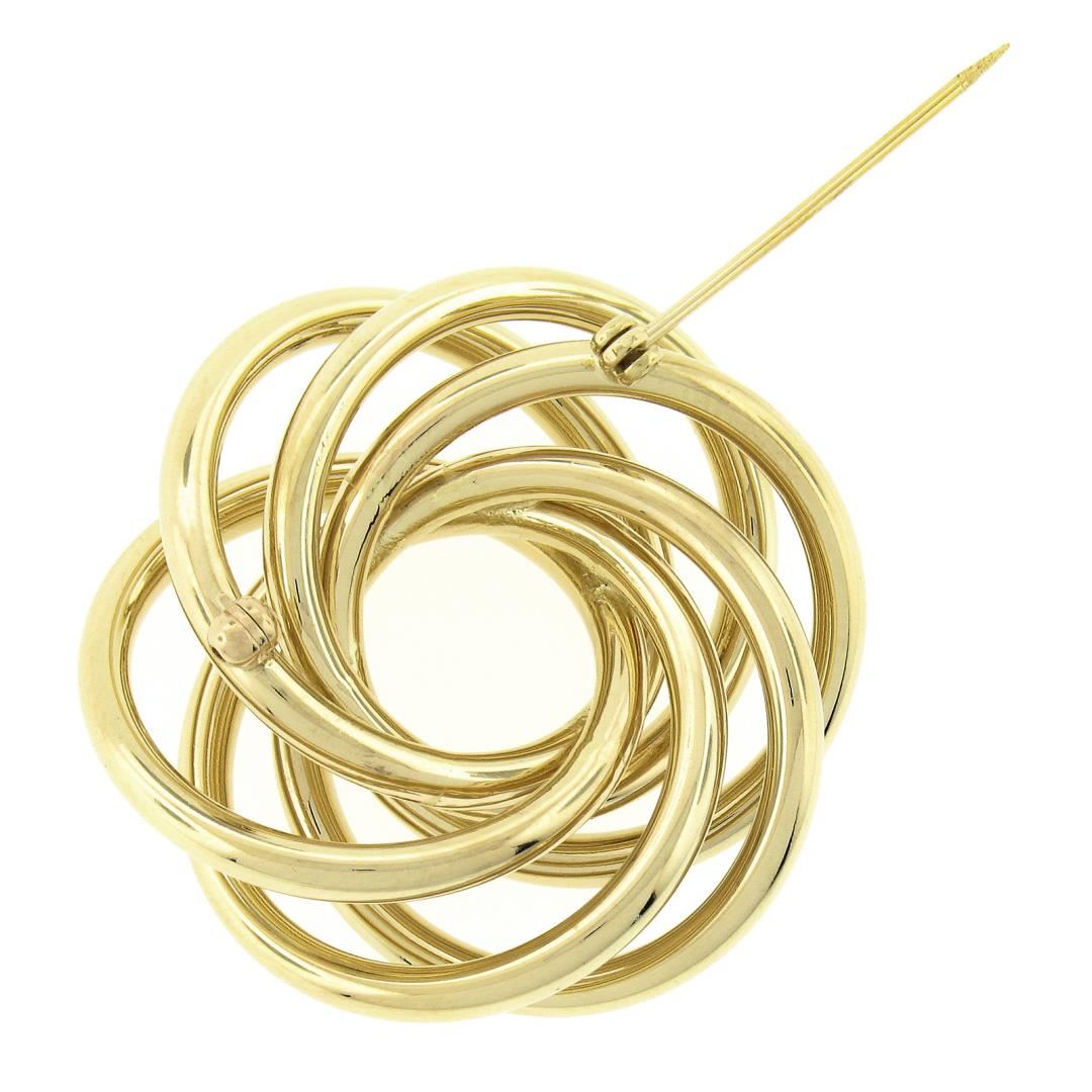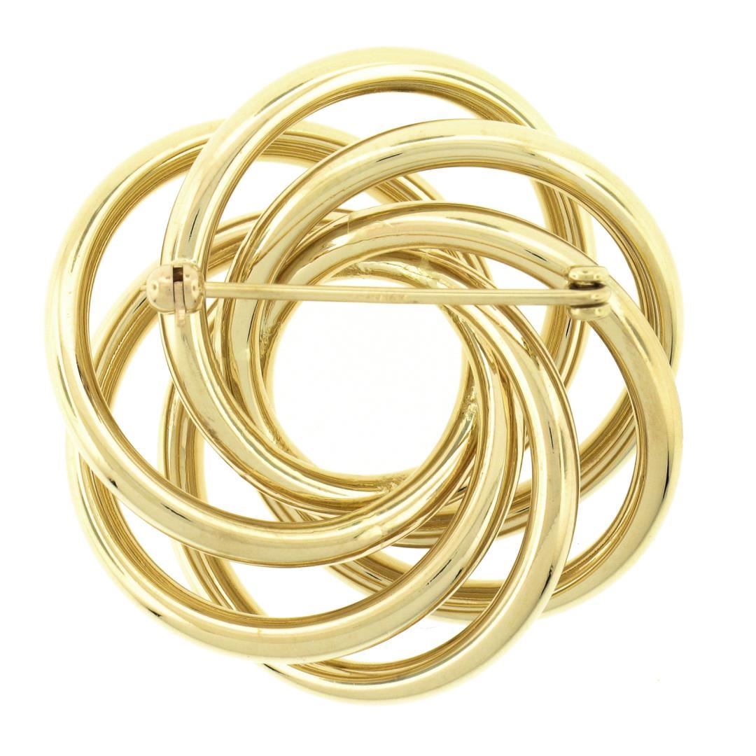 A solid 14k yellow gold infinity knot brooch. Measures 38.2x36.8mm and weighs a total of 9.27 grams.