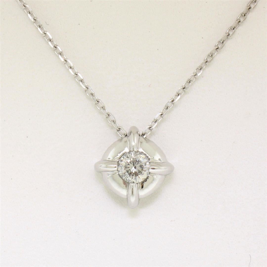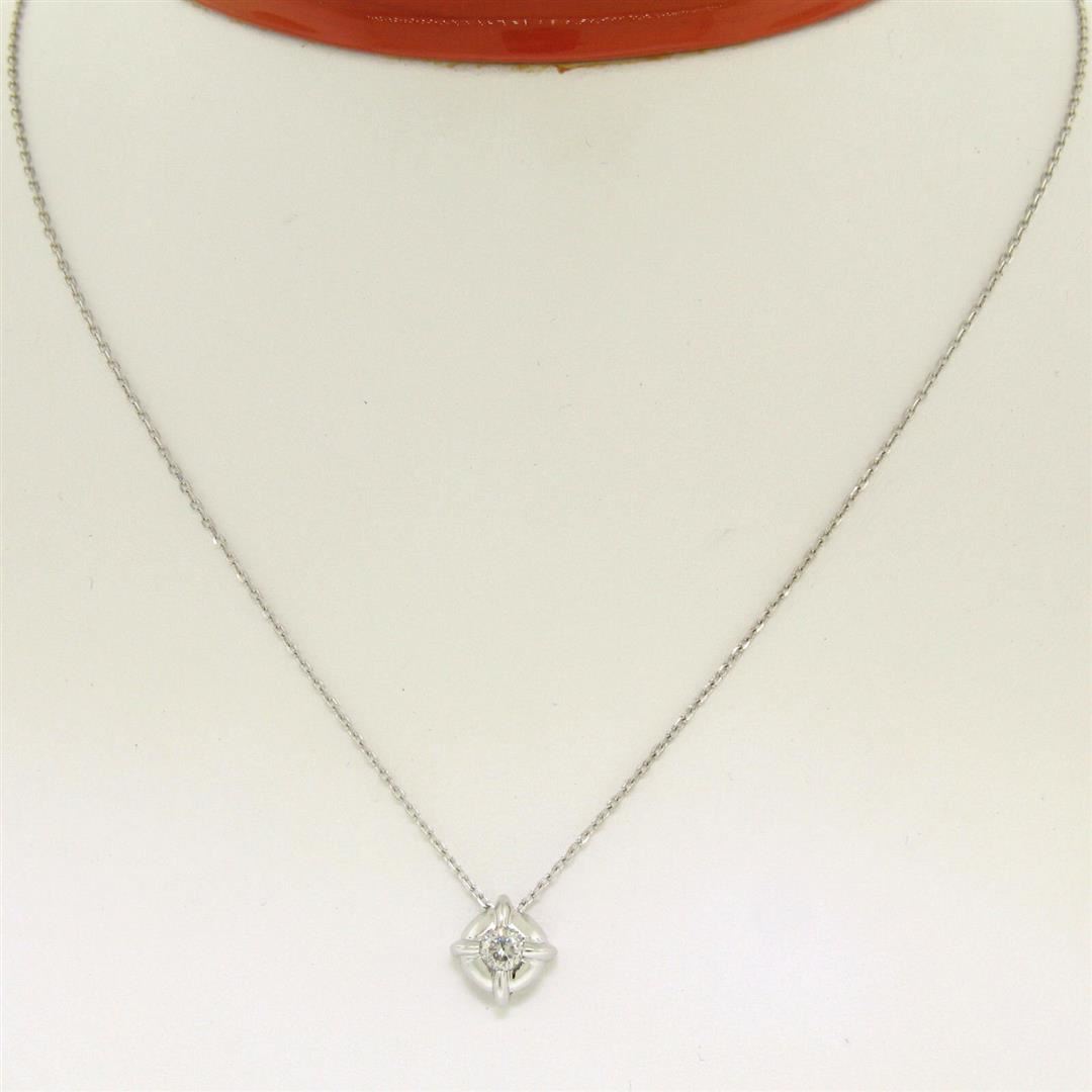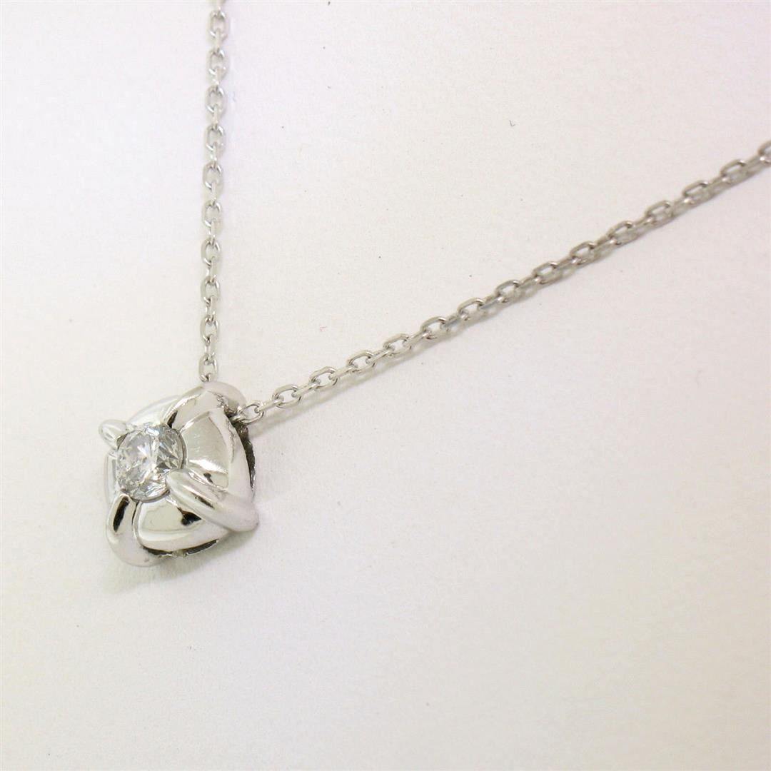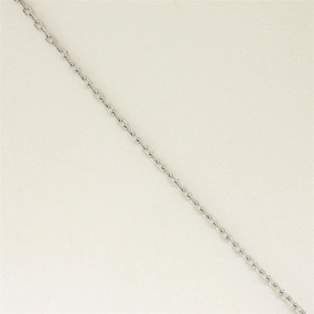 A 14kt white gold pendant necklace featuring a prong set 0.20ct round brilliant cut diamond (G/H - SI2). 16 inch cable link chain, 2.36 grams total weight, measures 9.48x9.81mm.