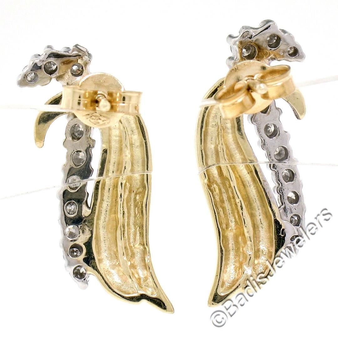 Like new 14kt yellow and white gold earrings set with 0.60 ctw of round diamonds (G/H - SI1/SI2). The earrings measure approximately 23.25x9.0mm and weigh a total of 6.01 grams.