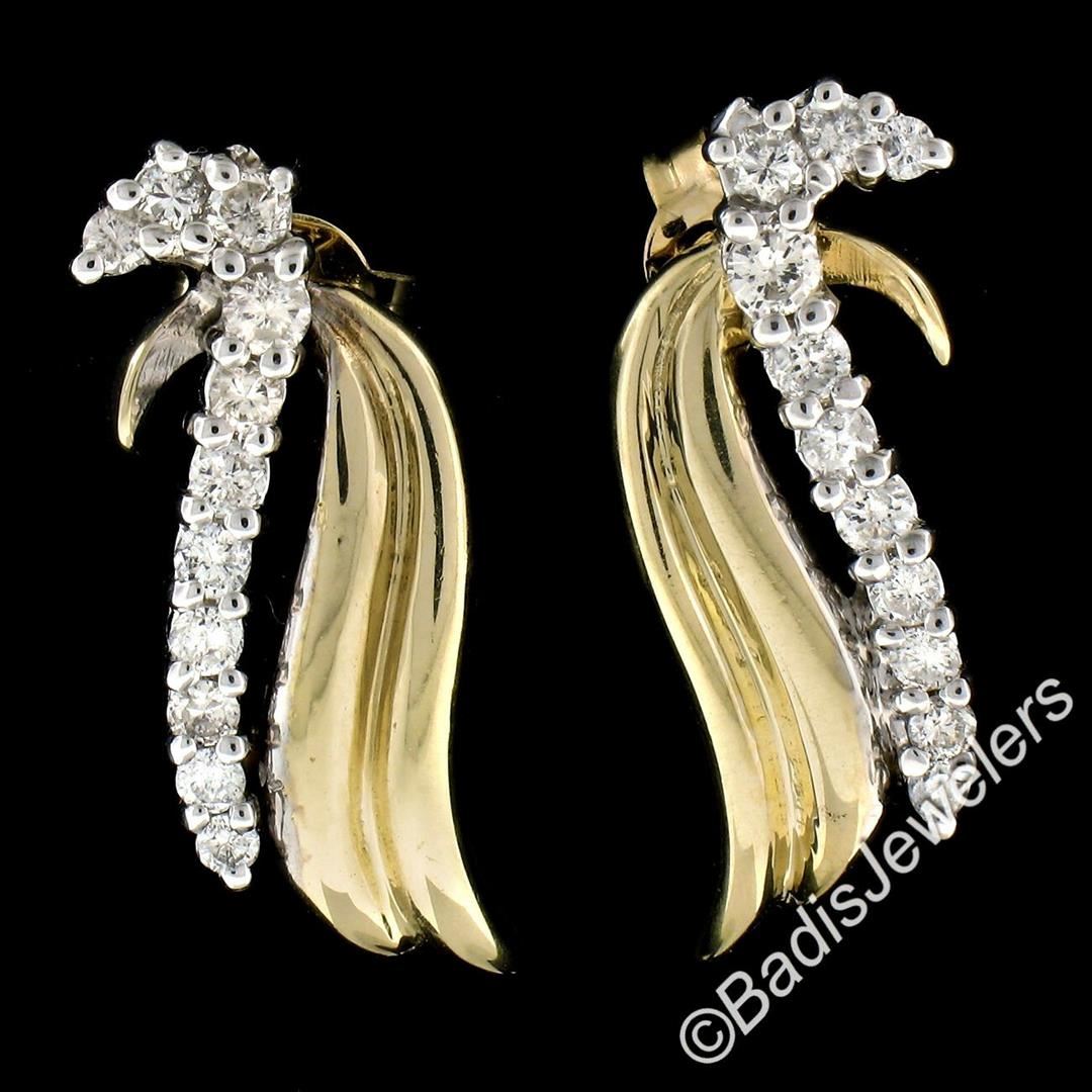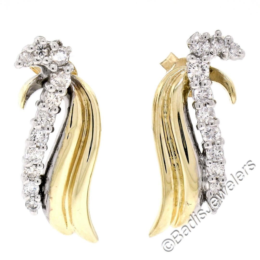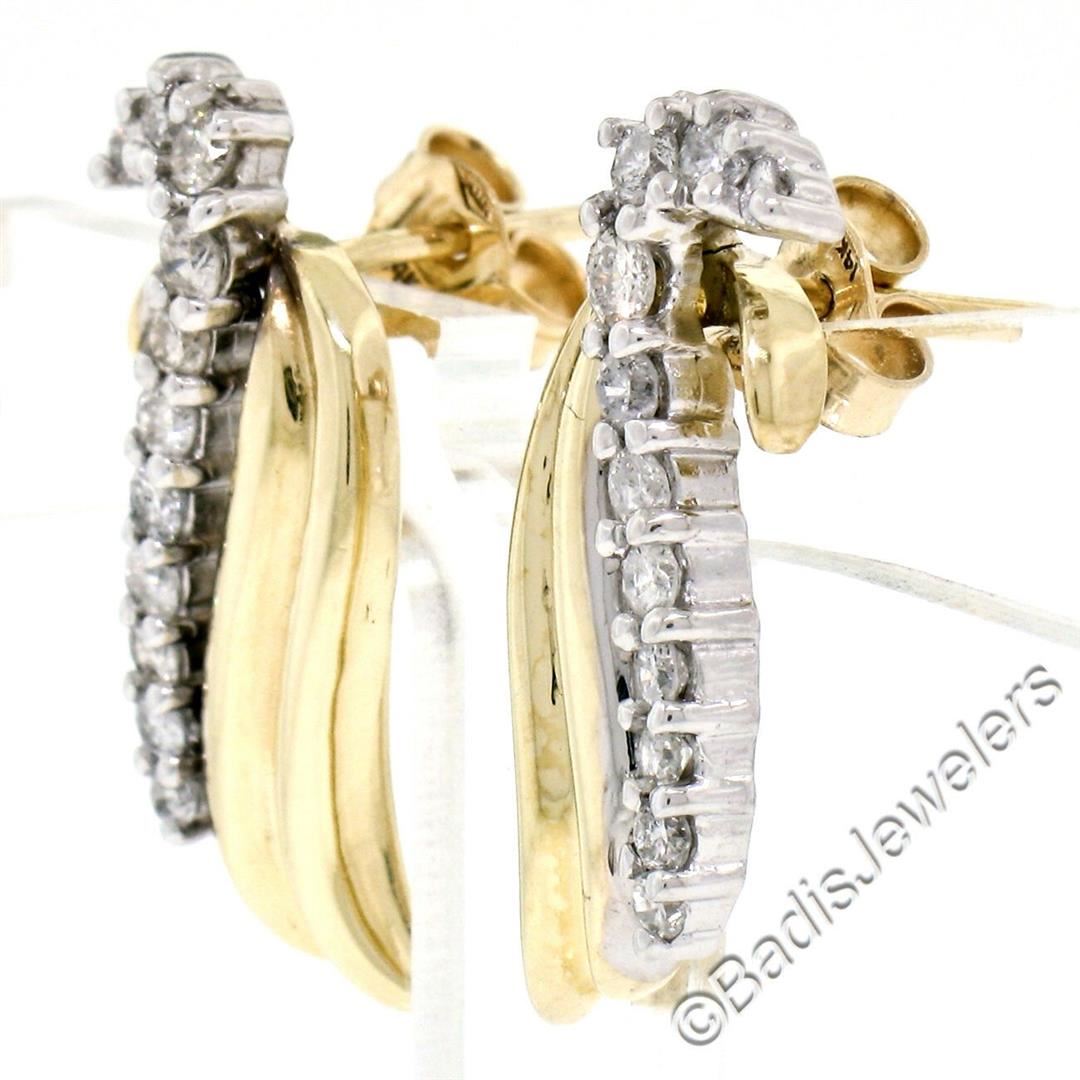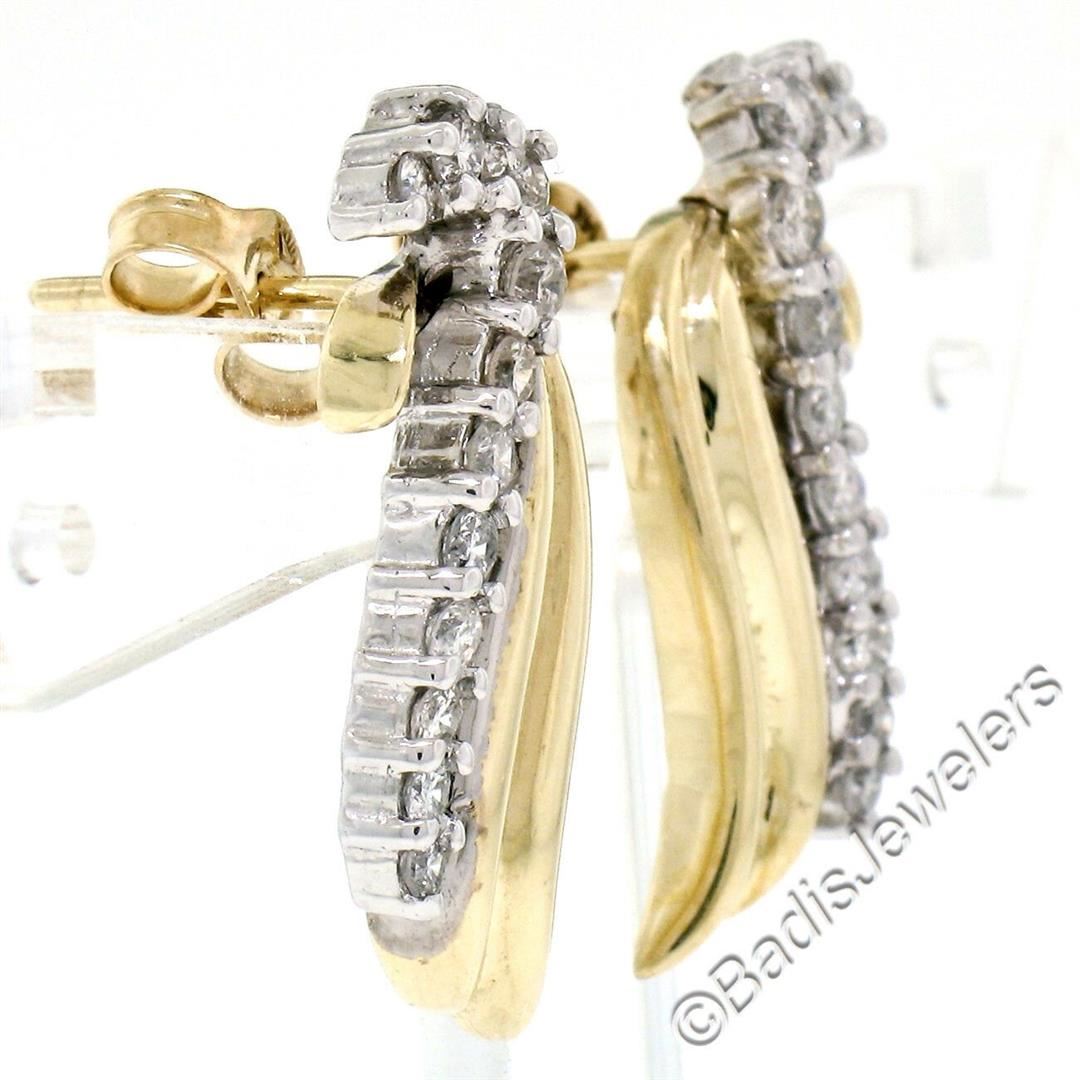 Like new 14kt yellow and white gold earrings set with 0.60 ctw of round diamonds (G/H - SI1/SI2). The earrings measure approximately 23.25x9.0mm and weigh a total of 6.01 grams.