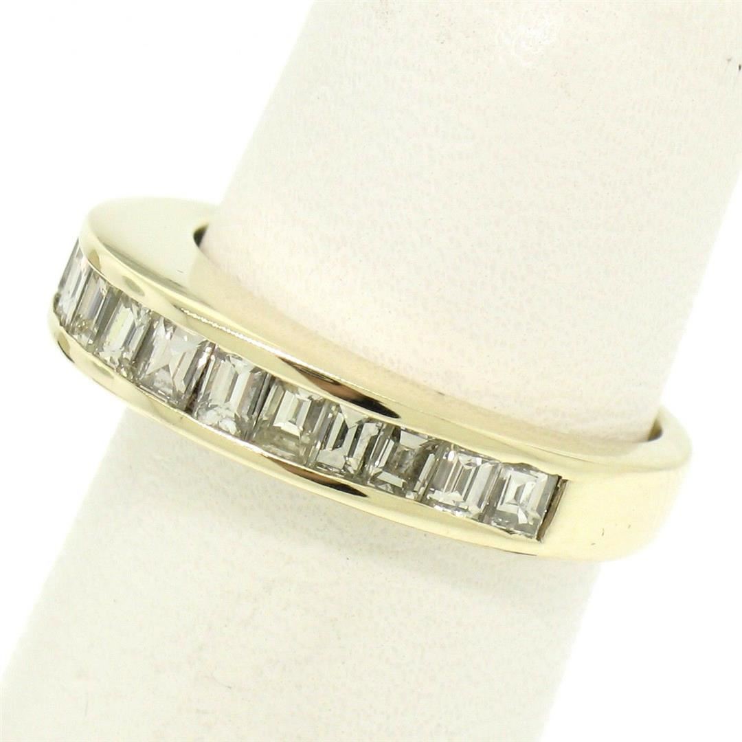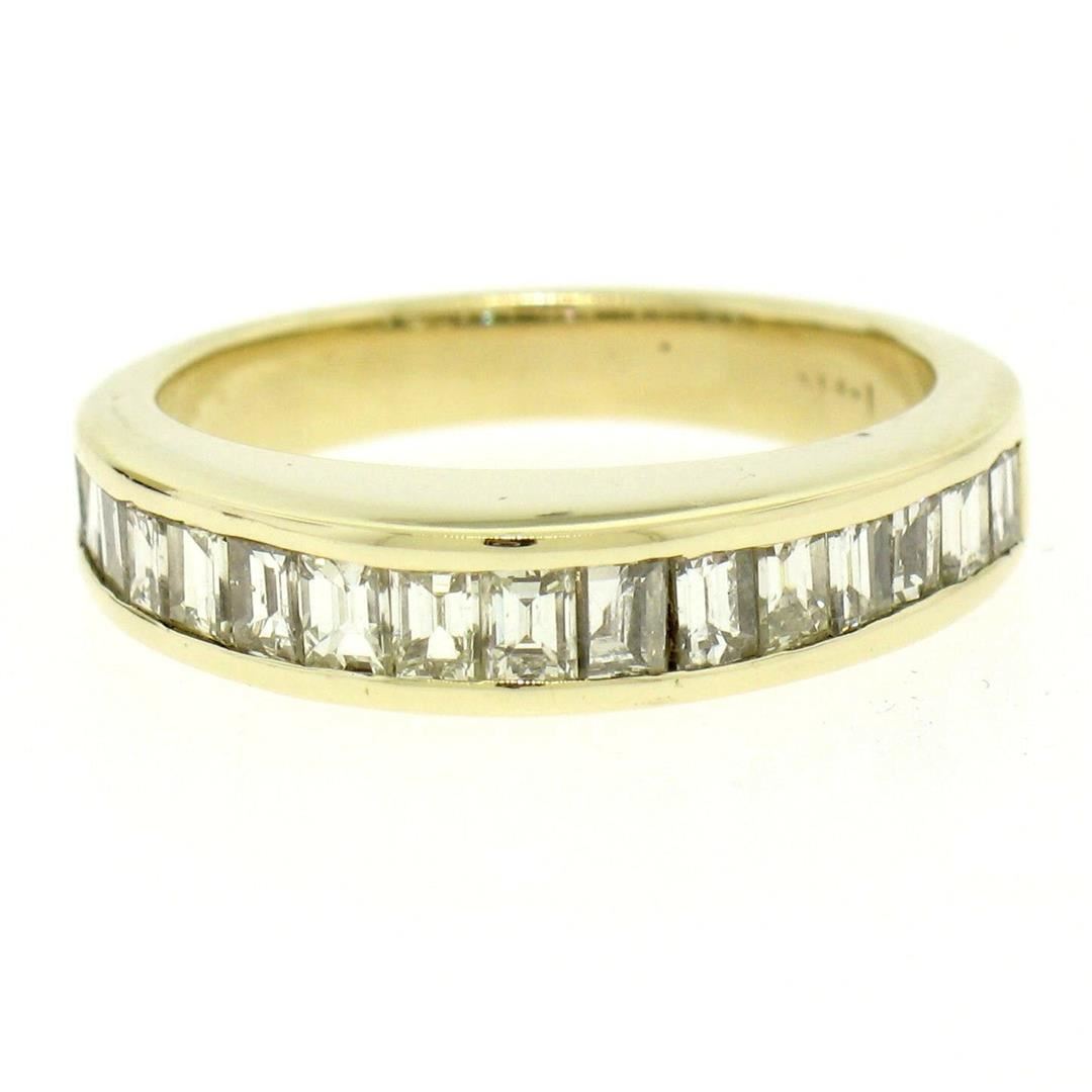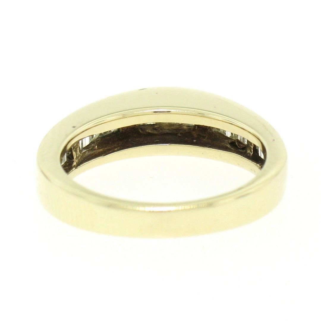 A like new 14kt yellow gold domed band ring with 1.0ctw of channel set baguette cut diamonds (H - VS1). The ring is a size 5, weighs a total of 3.90 grams, and is 4.20mm wide.
