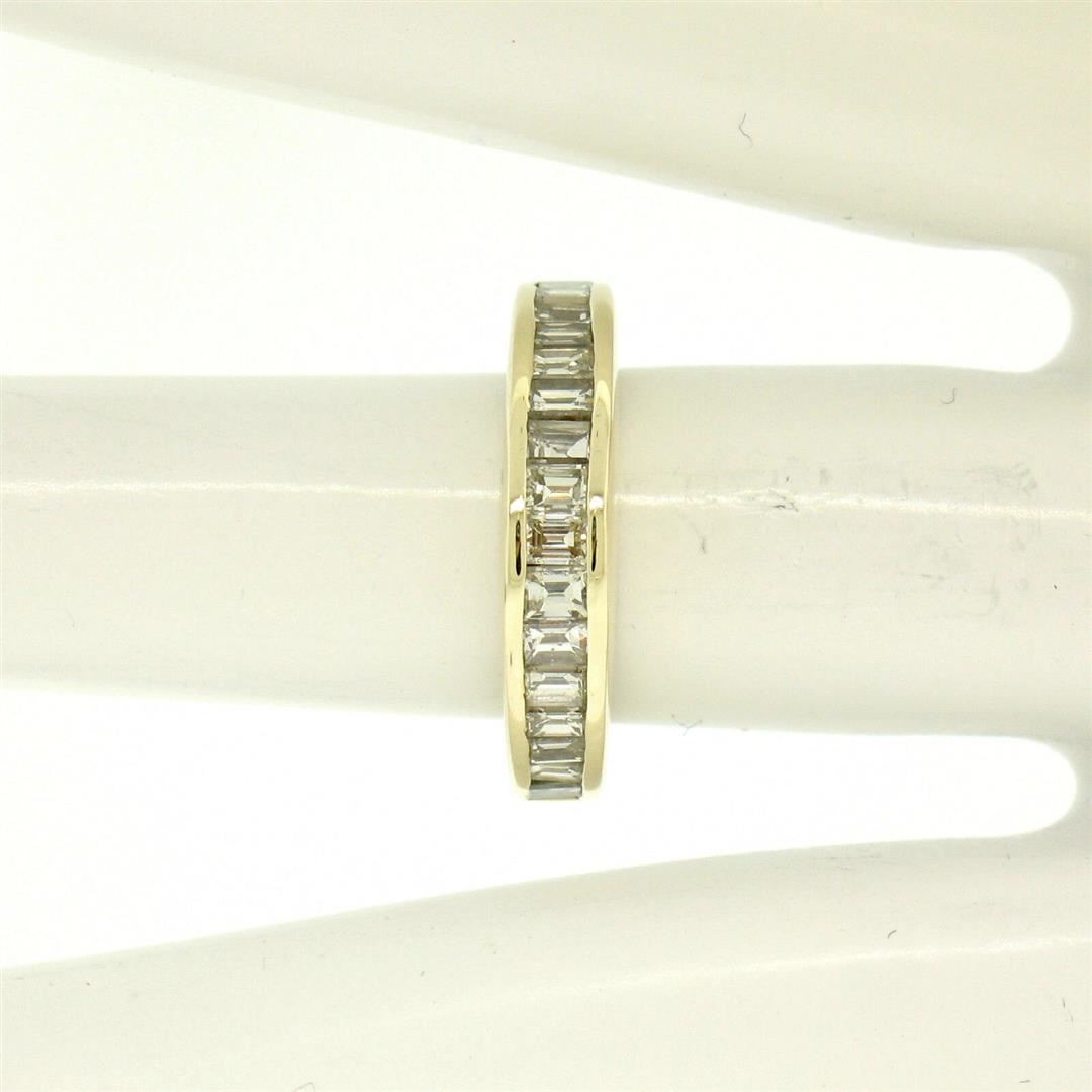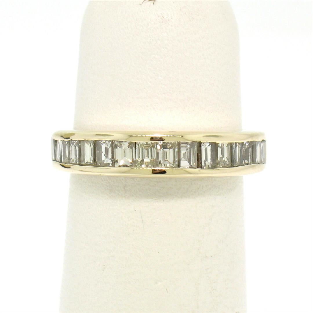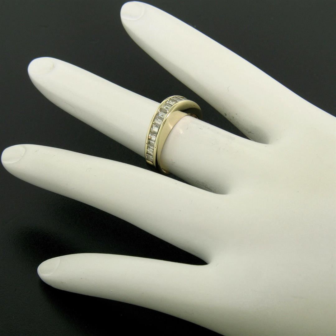 A like new 14kt yellow gold domed band ring with 1.0ctw of channel set baguette cut diamonds (H - VS1). The ring is a size 5, weighs a total of 3.90 grams, and is 4.20mm wide.