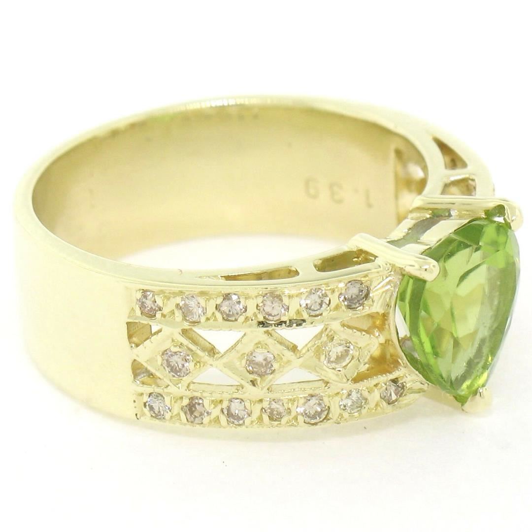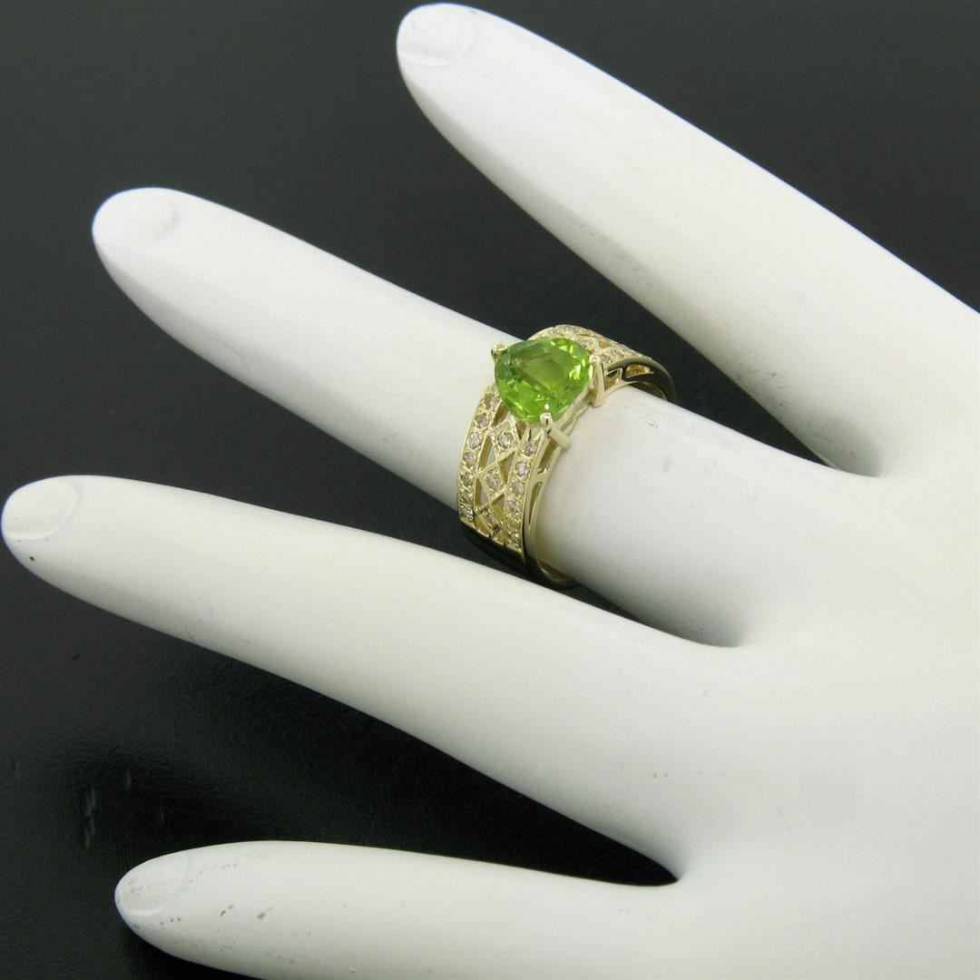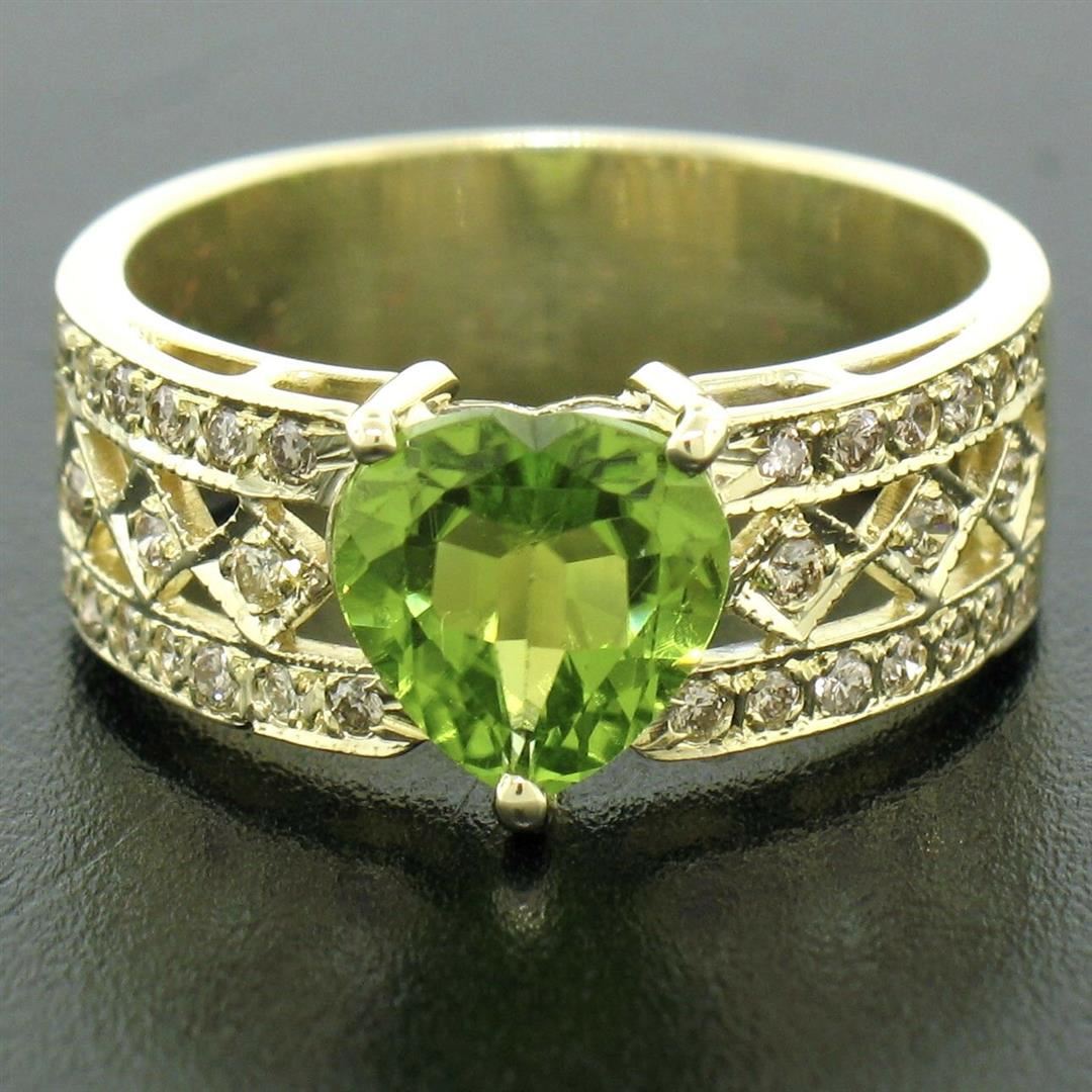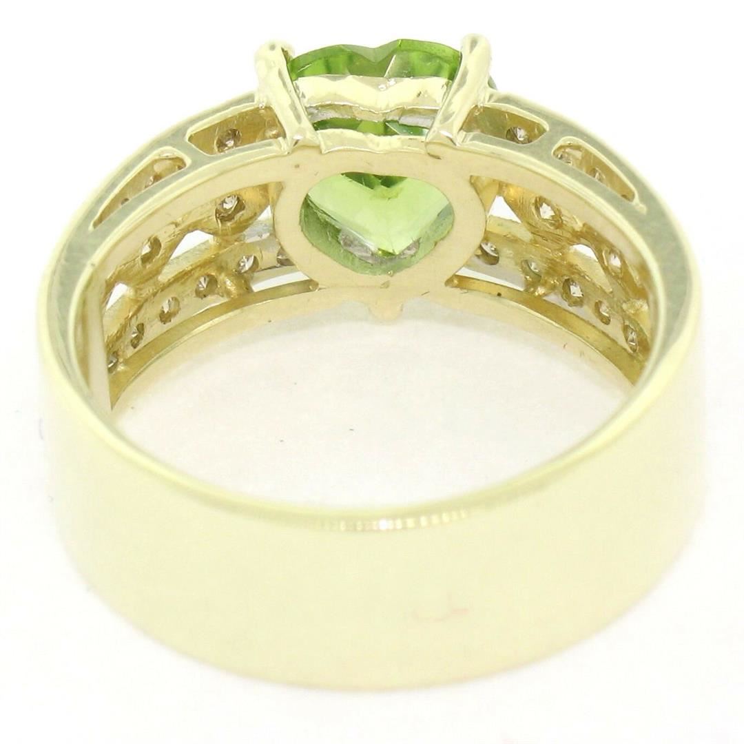 14kt Yellow Gold 1.90 ctw Heart Peridot and Diamond Wide Band Ring