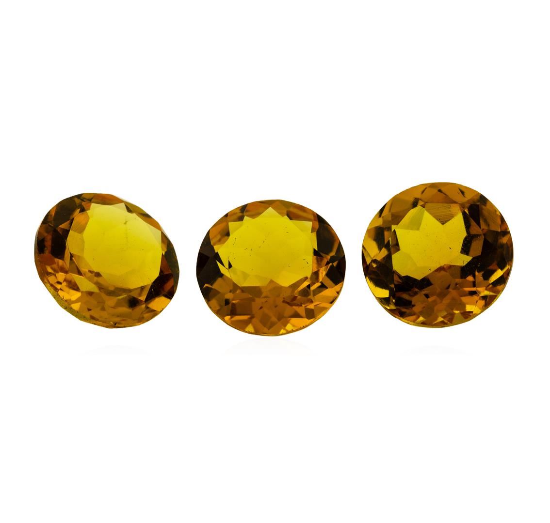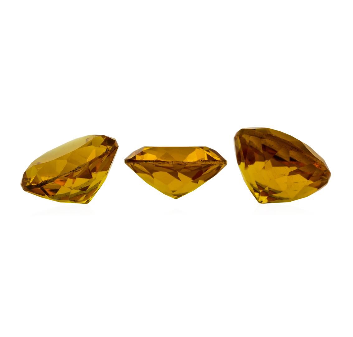 One natural round cut citrine quartz parcel of three with an exact weight of 16.35ctw., clarity is eye clean, yellowish orange, medium dark. Gemological Appraisals Services estimates the retail value at $654 GAS Appraised.