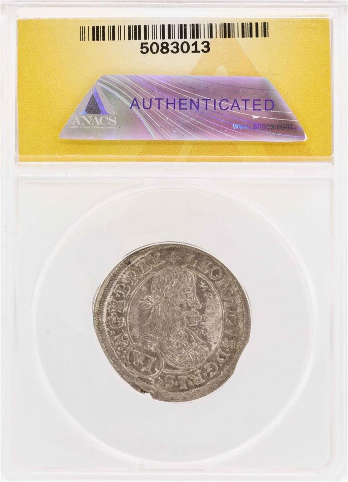 One 1673-Ian Austria Leopold I 6 Kreuzer Coin ANACS VF35. ANACS Appraised.