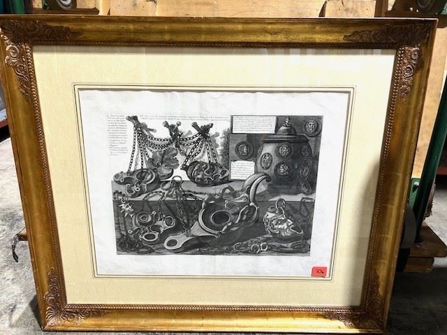 Framed 18thCentury Engraving 20x25" by famed Architect& Engraver Giovanni Piranesi, depicting a collection of excavated ancient Roman artifacts. Catalogue Raisonne by M.Henri Focillon . Old frame 32x37"