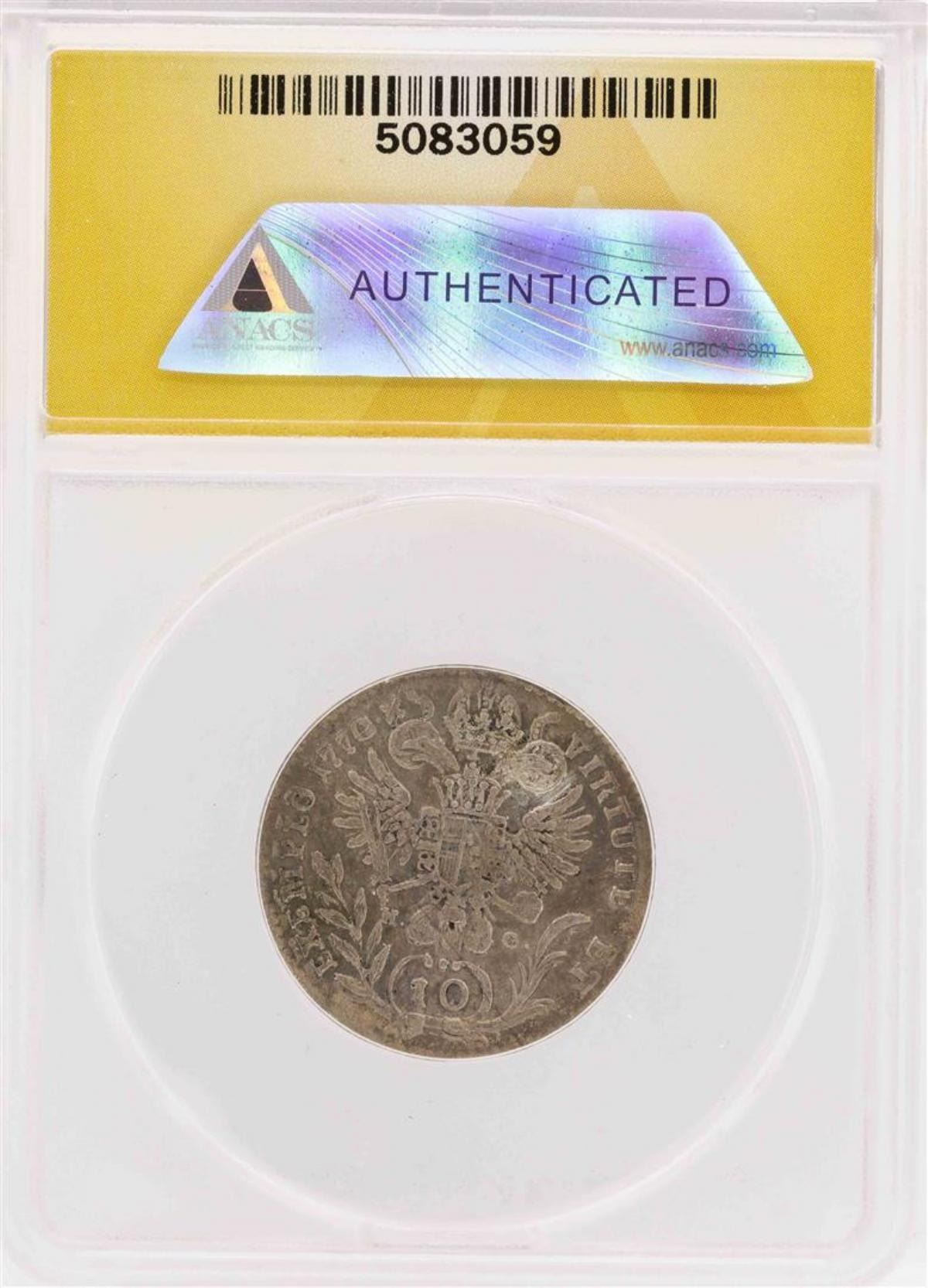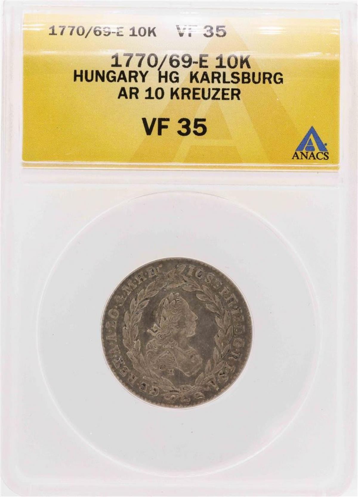 One 1770/69-E Hungary HG Karlsburg AR 10 Kreuzer Coin ANACS VF35.