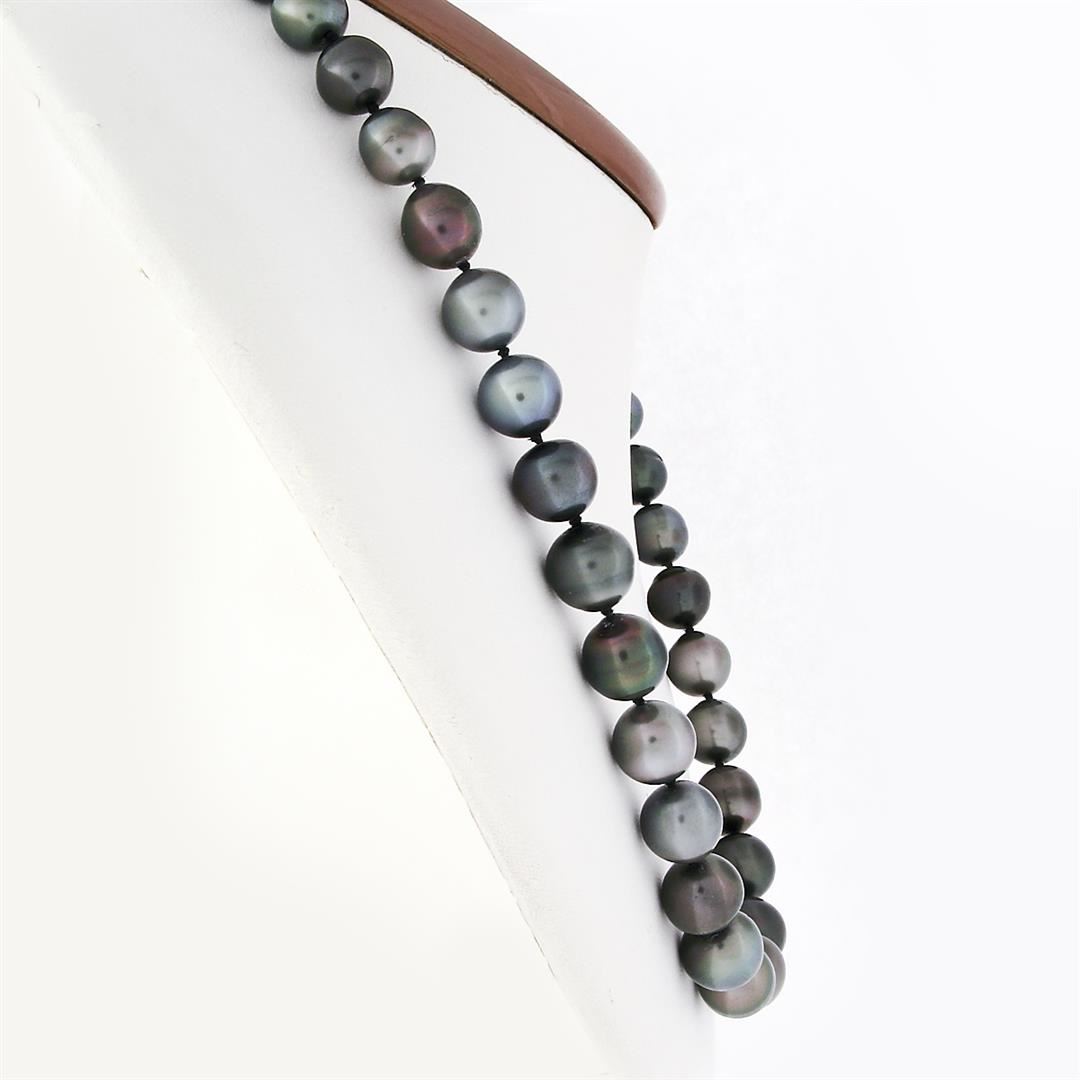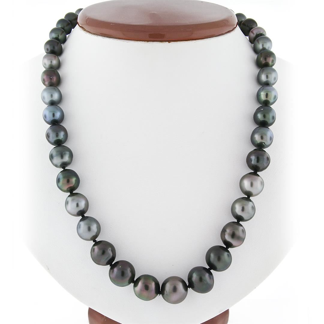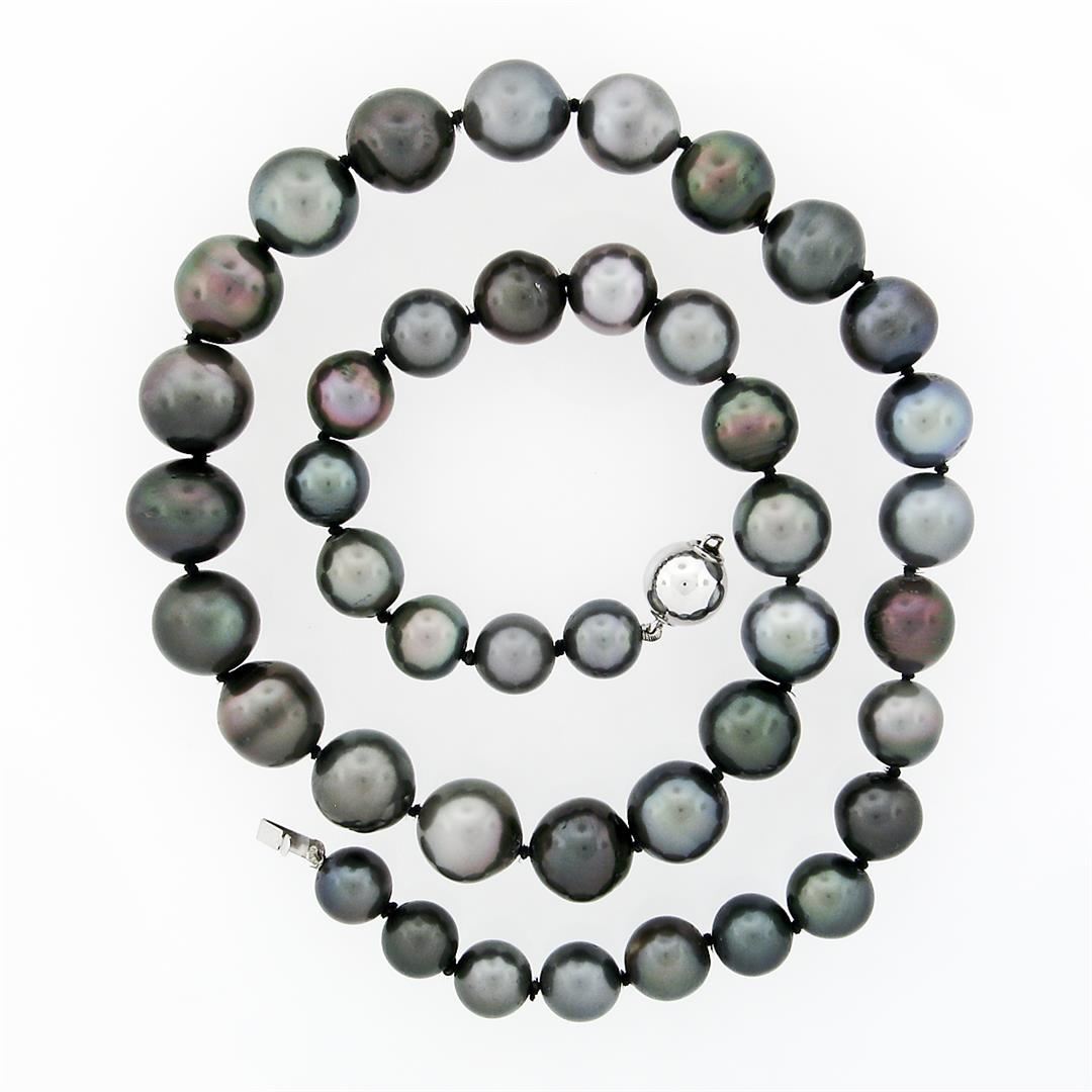 An estate strand necklace & solid 14k white gold clasp, with 42 off round to near round shape cultured tahitain pearls (8.25 to 11.5 mm). 18 inch bead link chain, 58.86 grams total weight.