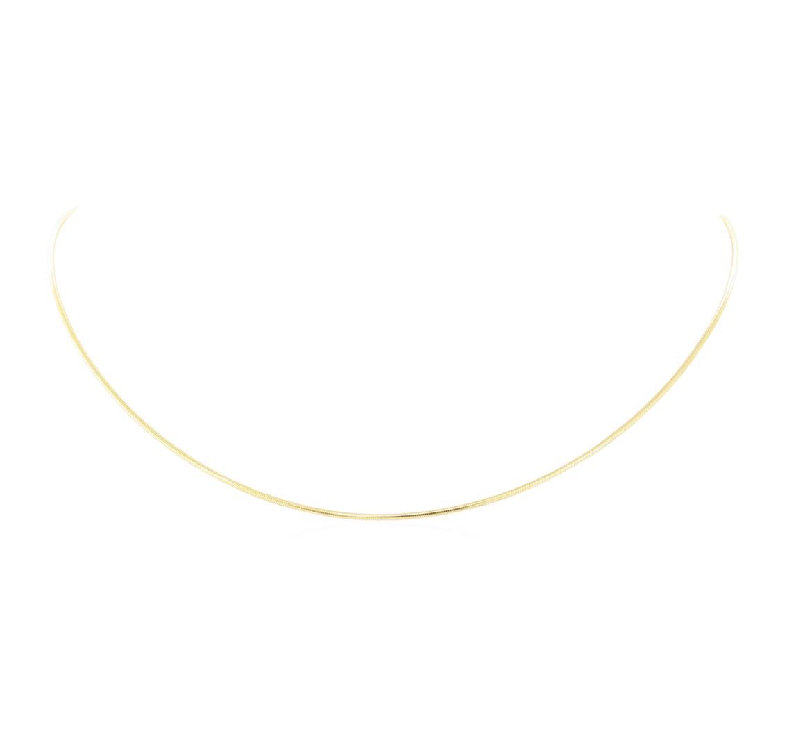 One 1.4mm wide rounded snake chain measuring 18 inches in length featuring: 14KT yellow gold weighing 8.2 grams.