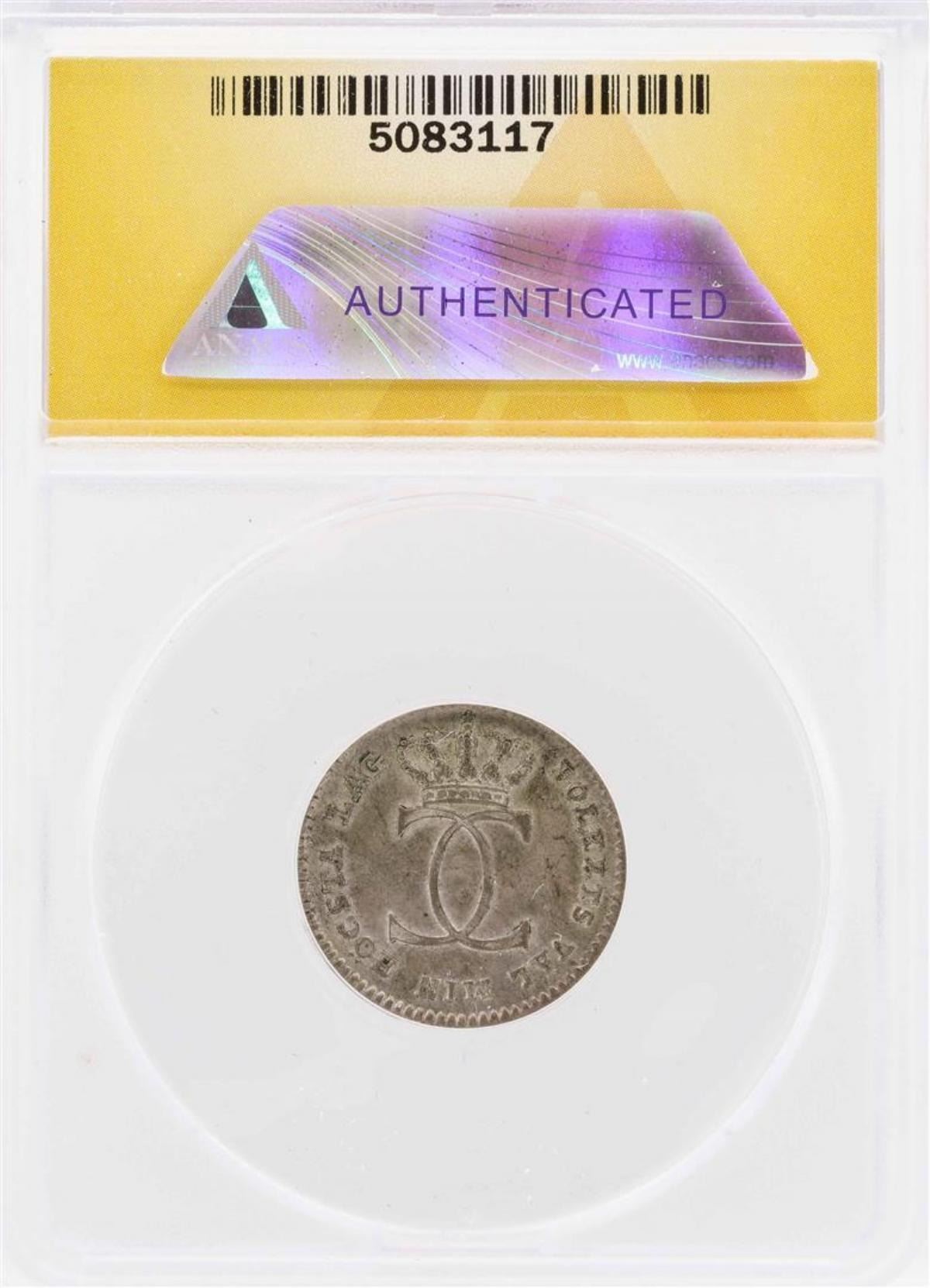 One 1810-OL Sweden Carl XIII AR 1/24 Riksdaler Coin ANACS AU50. ANACS Appraised.