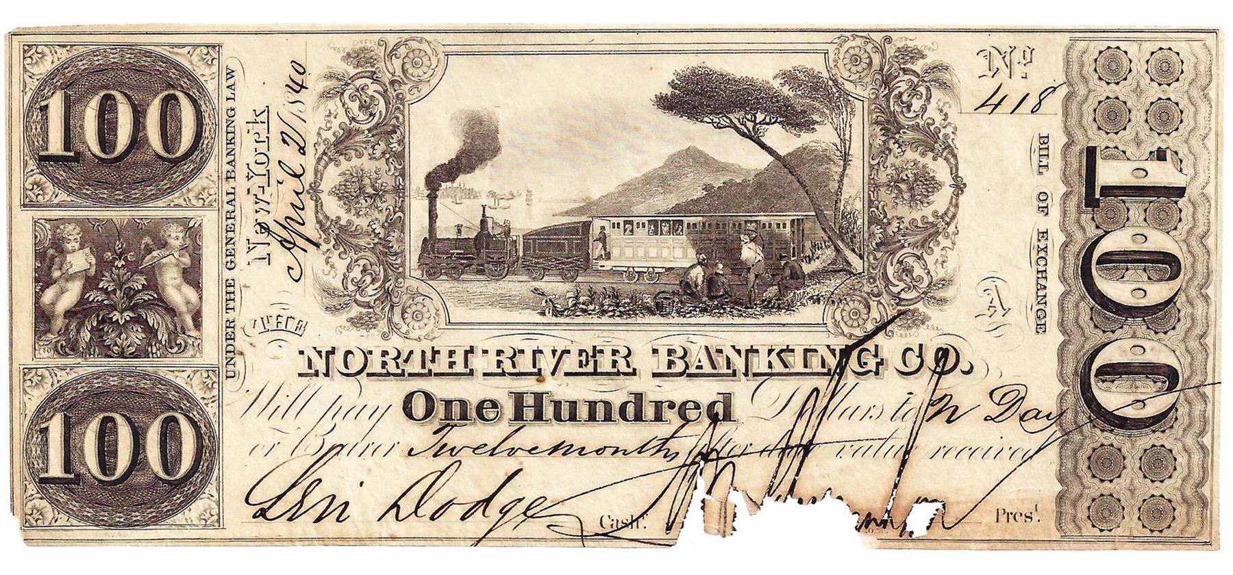 One 1850 $100 North River Banking co, NY Bill of Exchange