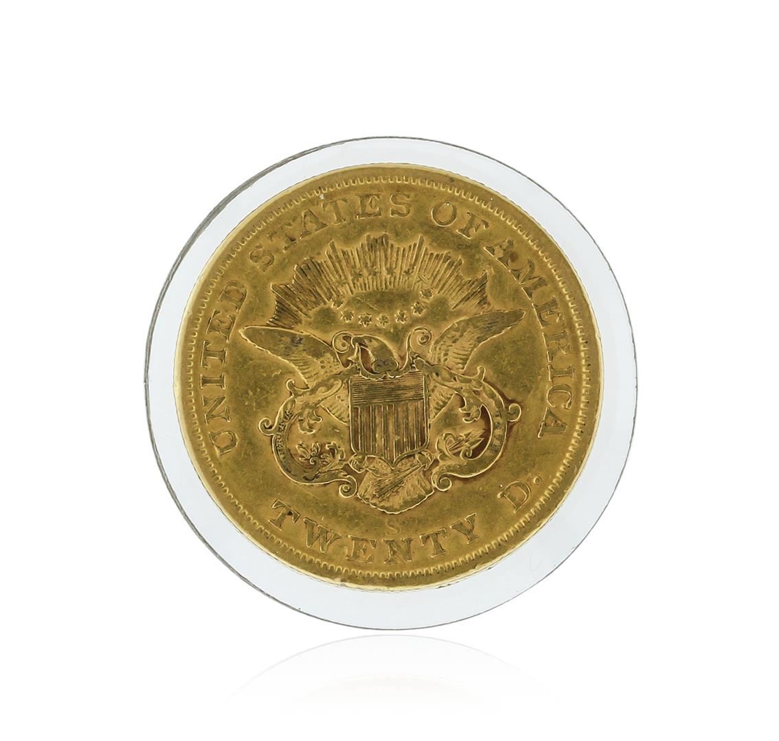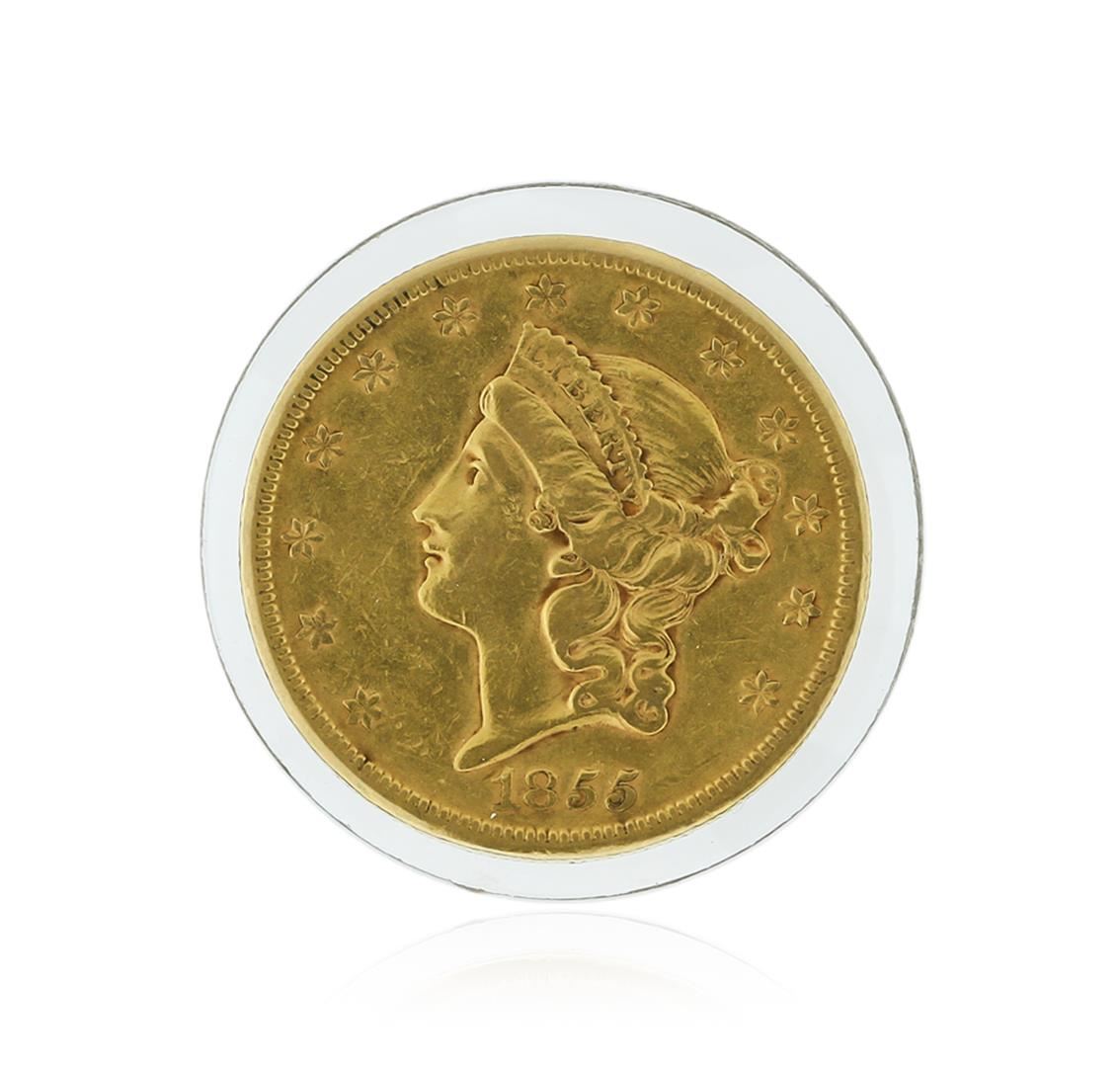 One 1855-S $20 VF Liberty Head Double Eagle Gold Coin.