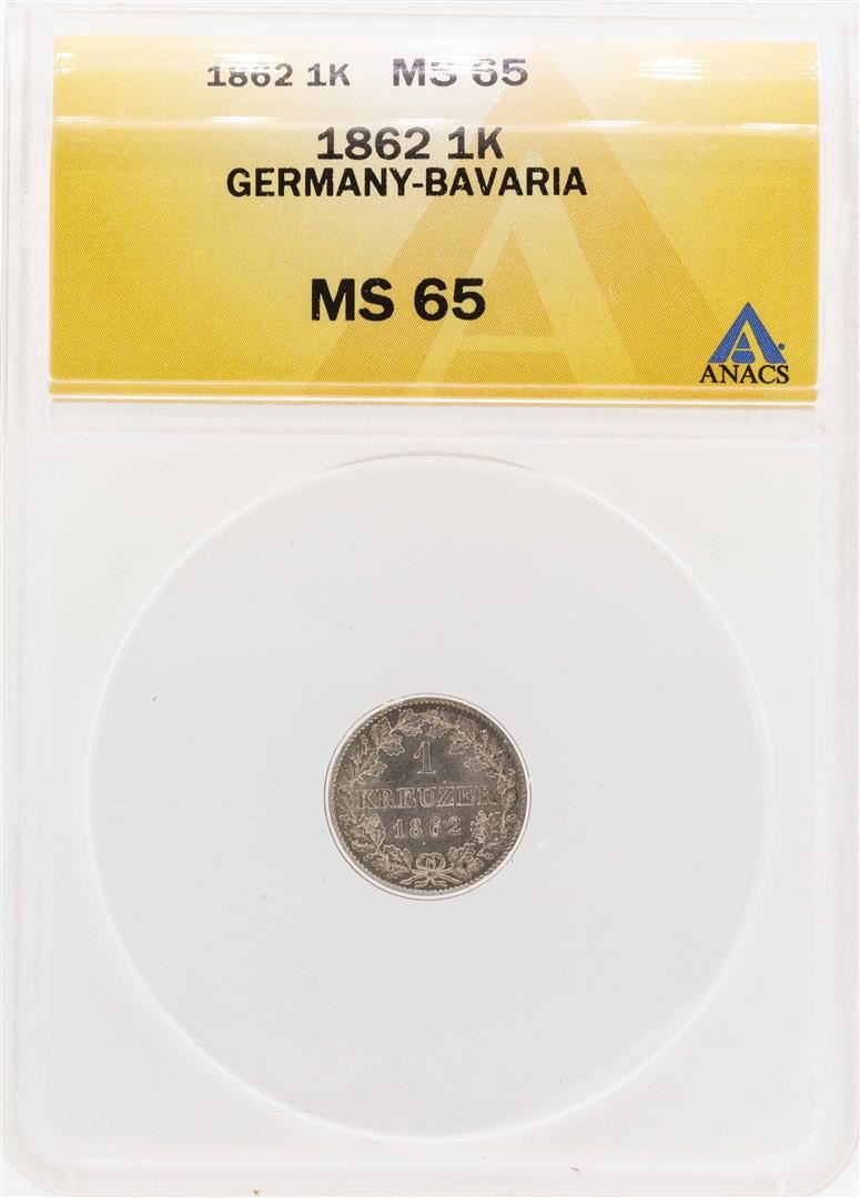 One 1862 Germany-Bavaria 1 Kreuzer Coin ANACS MS65.