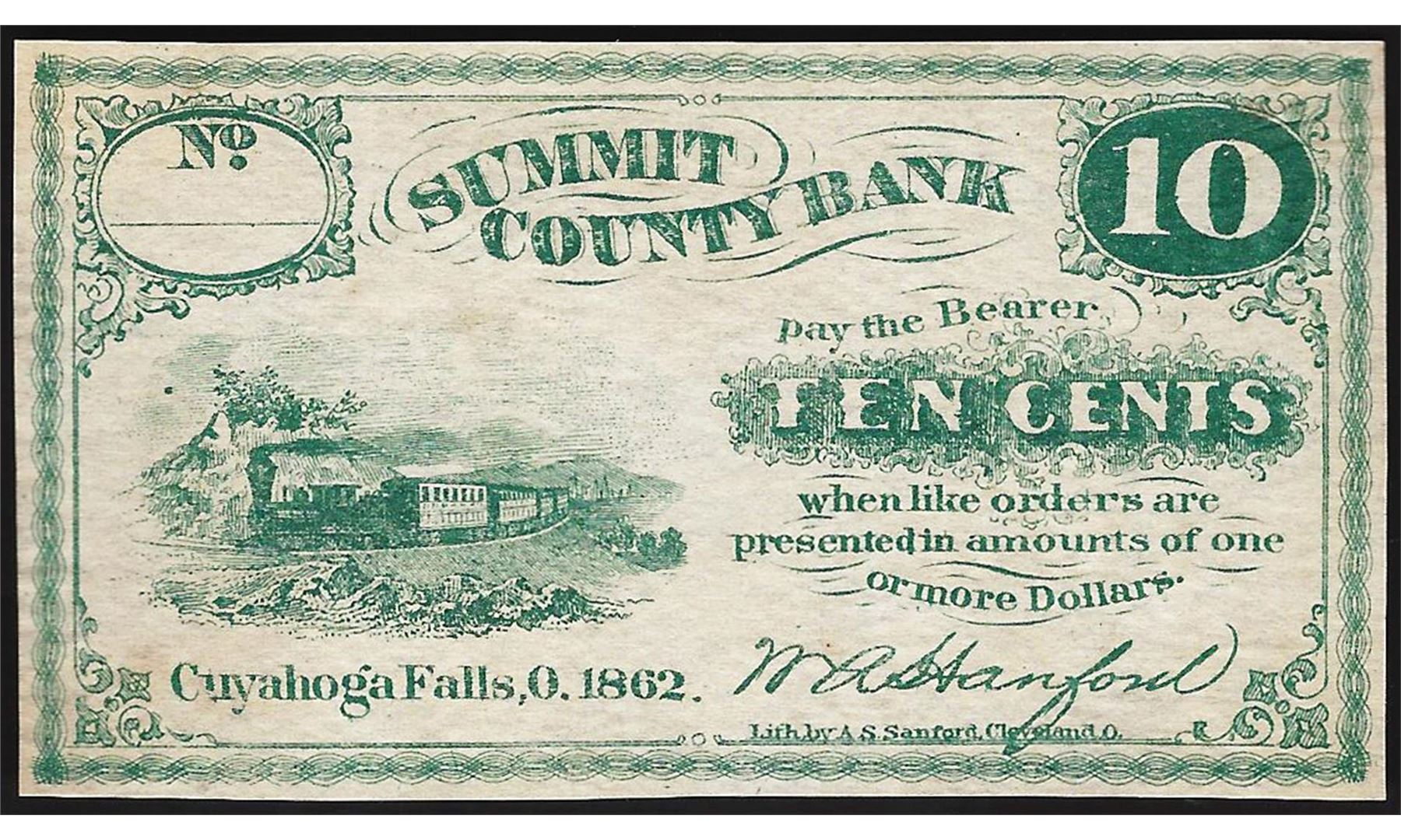 One 1862 Ten Cents Summit County Bank Obsolete Note.
